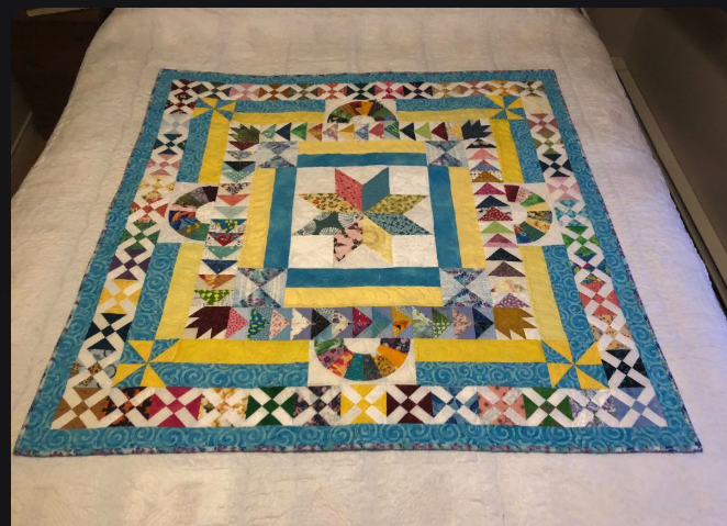Rosie used leftovers from hourglass round to make stars for the corners and then added borders to bring it to QOV size.