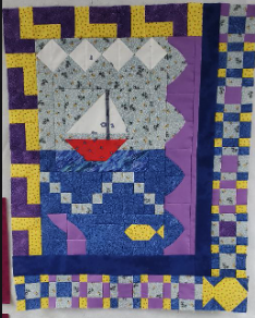 Katie Y says, “I added uneven 9 patches and one of my larger fish to try to balance out the yellow.”