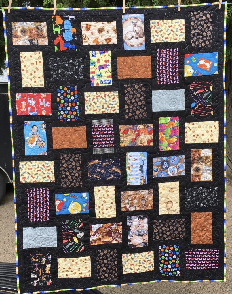 Dog/Cat Quilt #2 used 8 yards of fabric. You can see more details of this quilt HERE.