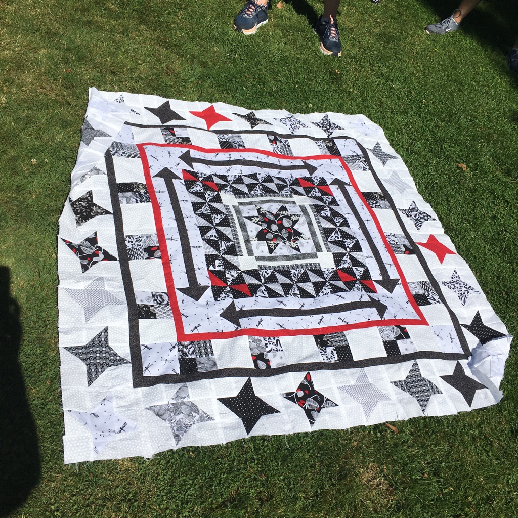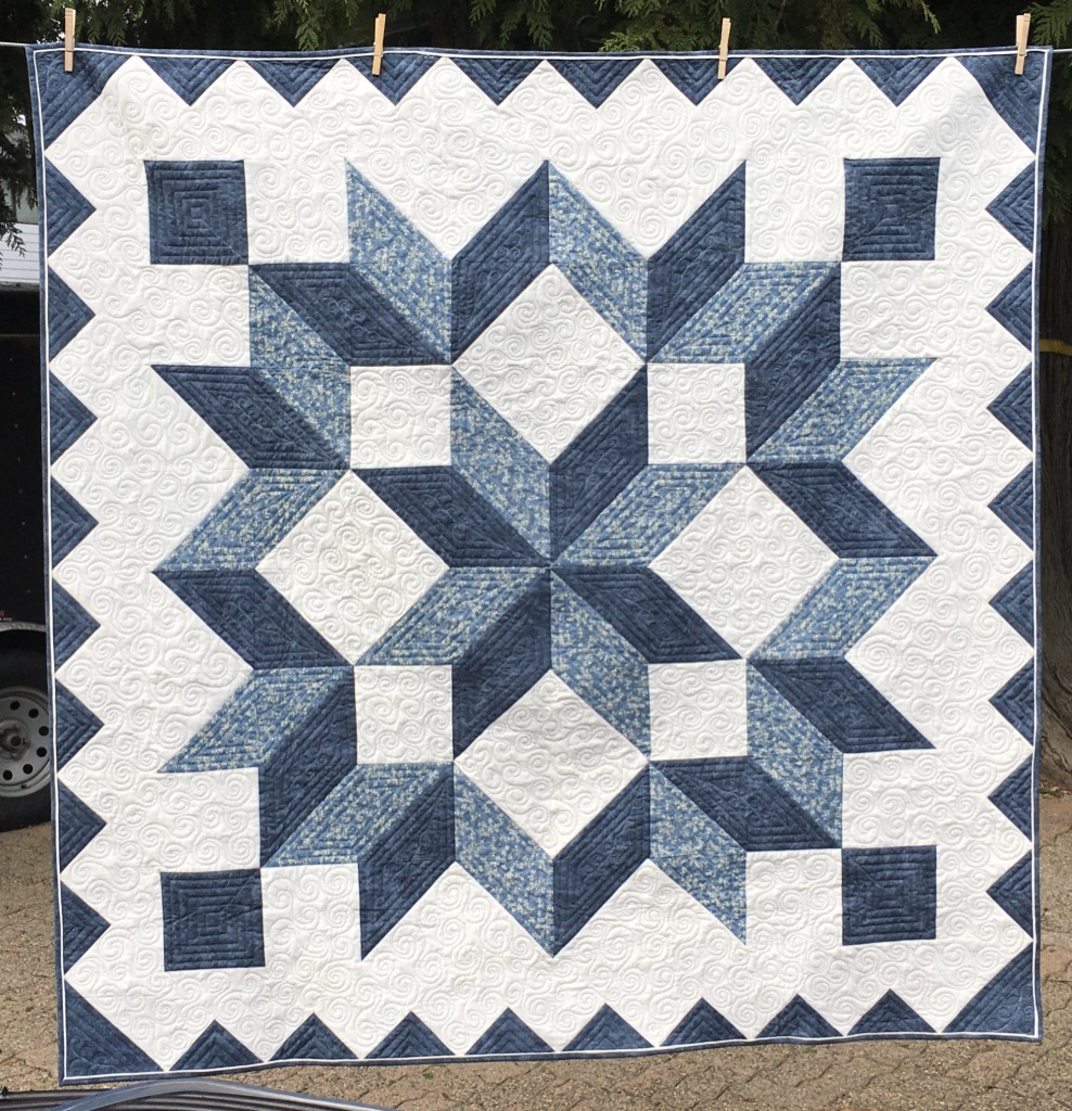 The Carpenter’s Wheel (Star) is ready to be sandwiched … the quilt was webbed together and the border was added after this picture was taken.