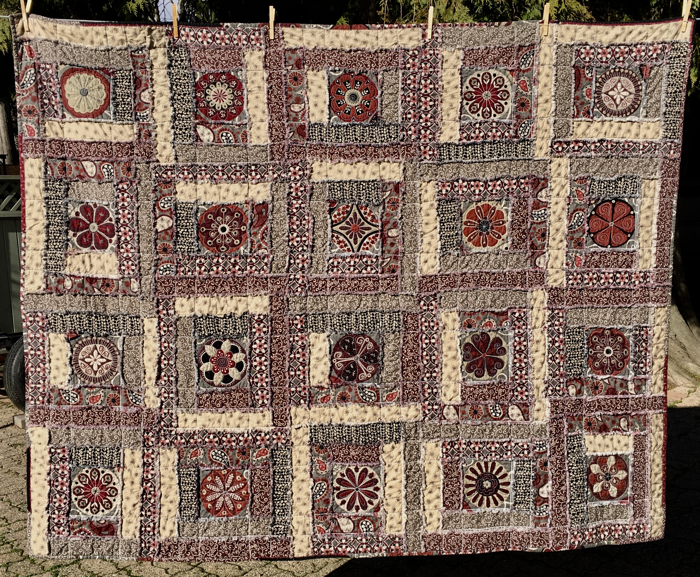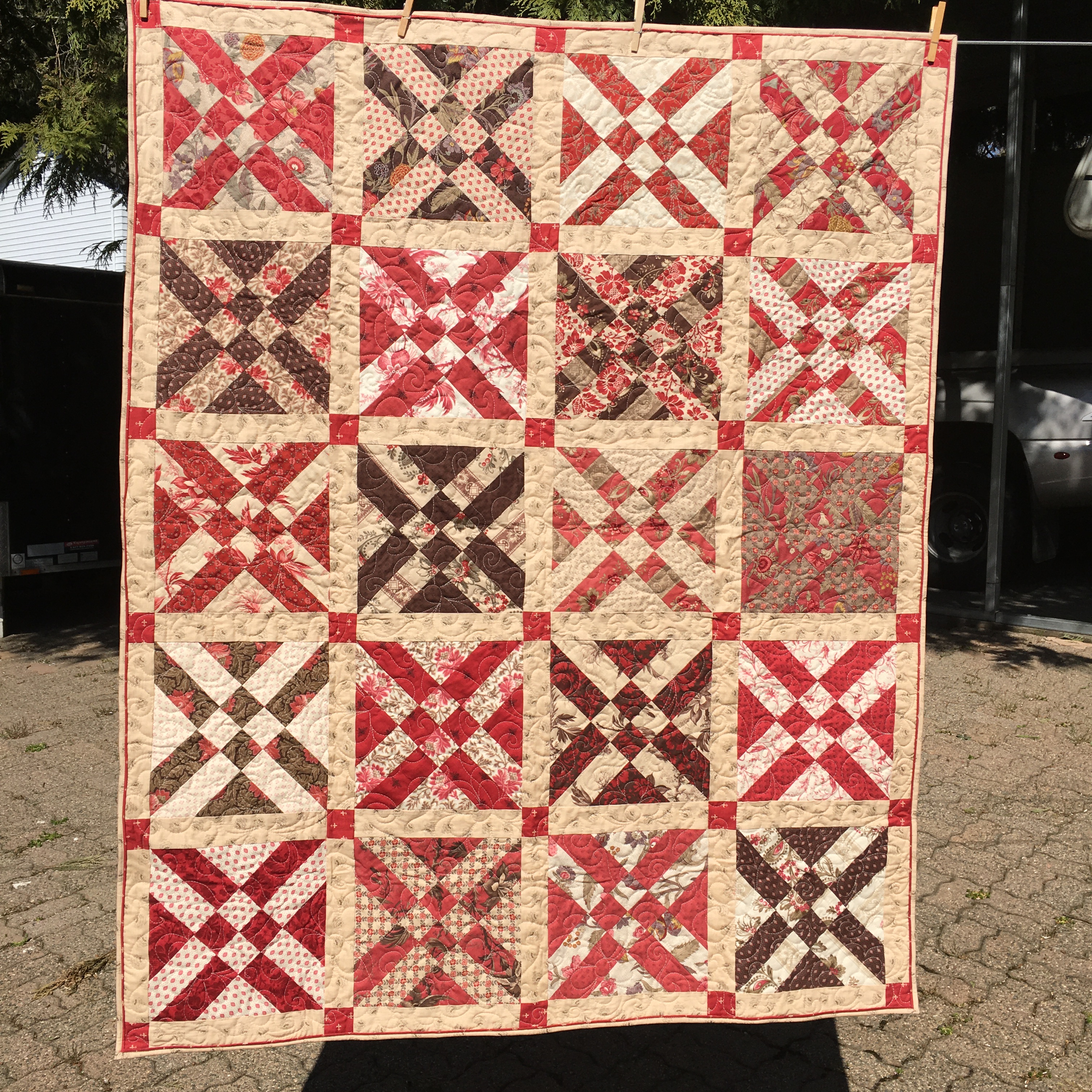 This bag is from the pattern “Charming Bag” and you can get it at Fibre Expressions. I believe that the designer is either the owner of the store or her daughter. Anyhow … you can order either the pattern or a kit. I used a Charm Pack called “Sew & Sew.”