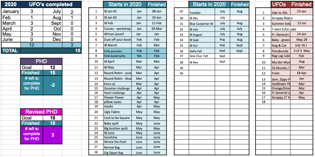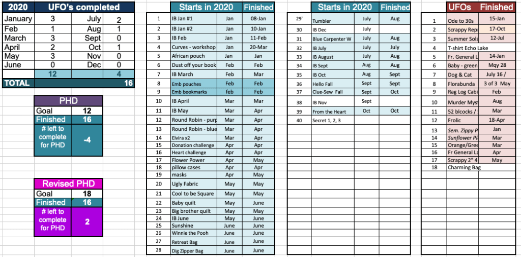 Someone asked me if I’d be running the PHD in 2021! And the answer is YES! I will have 14 UFOs left and so hopefully, I will get those done next year. I think it will be a wonderful feeling to NOT have any UFOs.