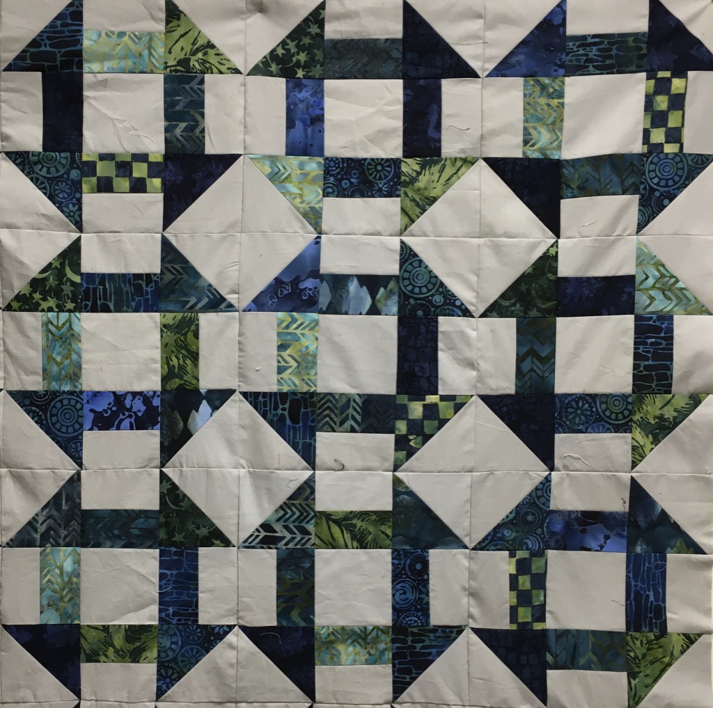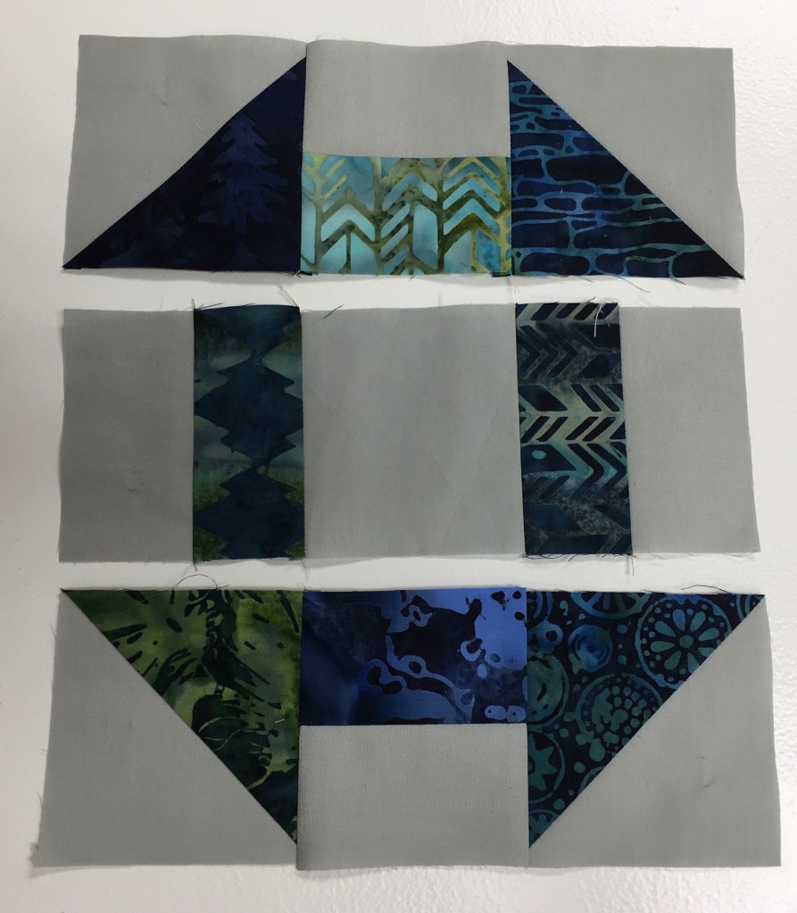 Place the blocks on a design board (or bed). As you lay out the blocks, pay attention to where the pins are. By doing this, your seams should nest nicely. (Provided you followed the pressing directions accurately).