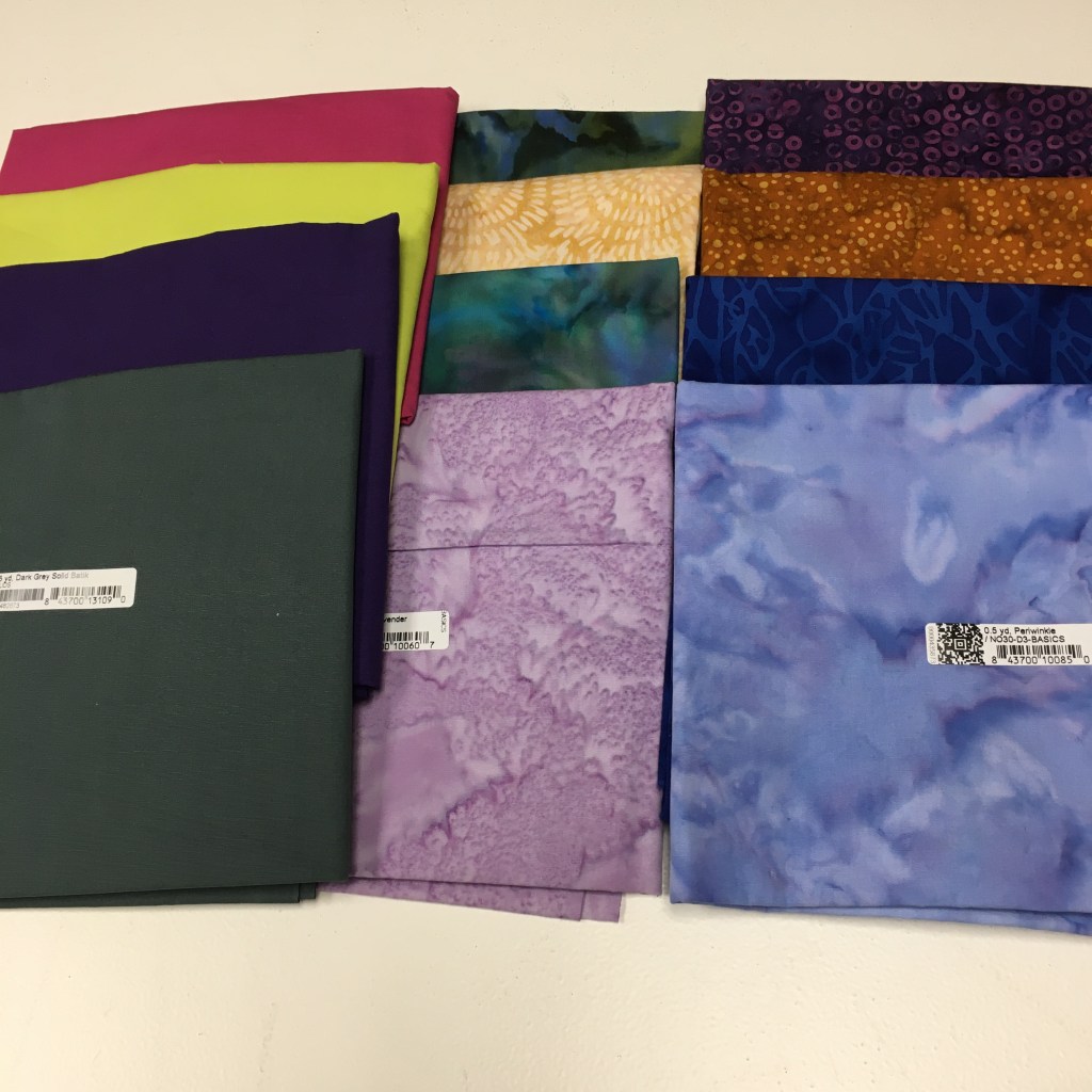 That’s the name of this bundle of 1/2 yard cuts. Designed by Claudia Pfeil. And there are 2 yards of “Scrolling Grape” and 2 yards of “Nautilus Floral-Baja.” I’m in LOVE with these fabrics … I’ll be sharing what I make with them during our blog hop in February.