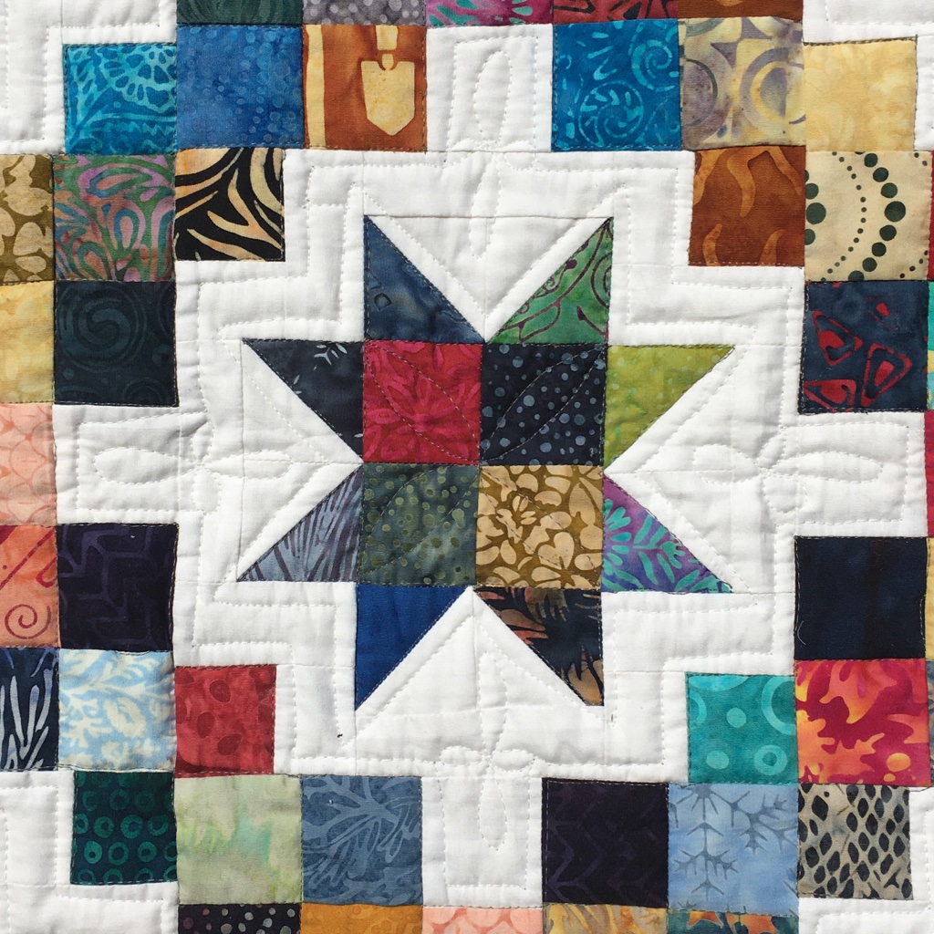 Hobbs 80/20 batting was used, Aurifil #2610 – Light Blue Grey, and Schmetz needles were used for piecing and quilting. (All of these were provided by Island Batik and Industry Partners).