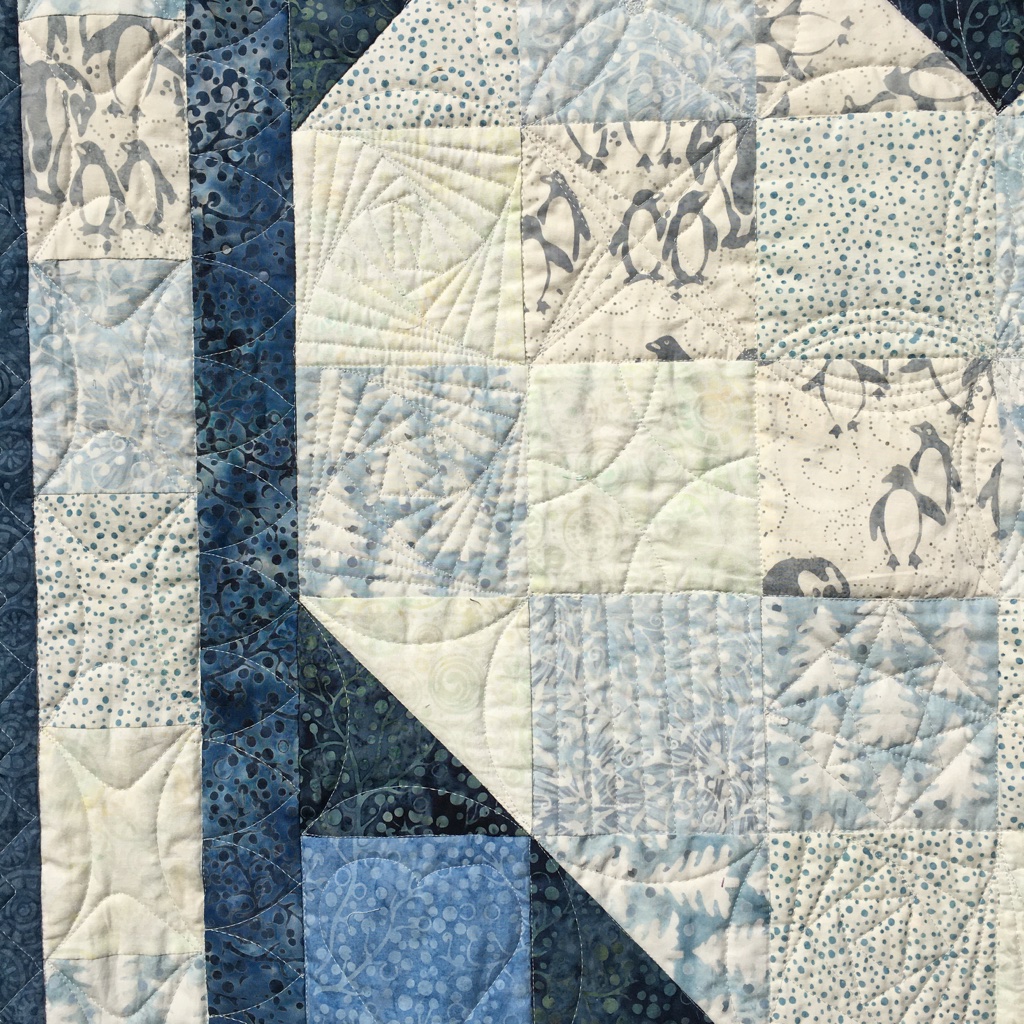 Hobbs 80/20 batting was used, Aurifil #2610 – Light Blue Grey, and Schmetz needles were used for piecing and quilting.