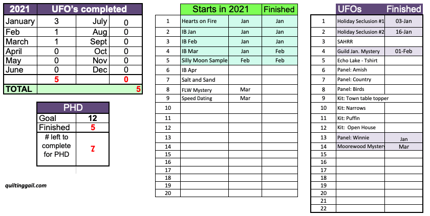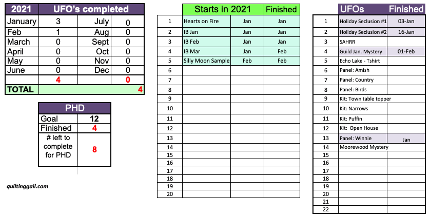 This quilt counted as one of my UFOs because it could not be completed in 2020 … (my own rules as to what makes a UFO).