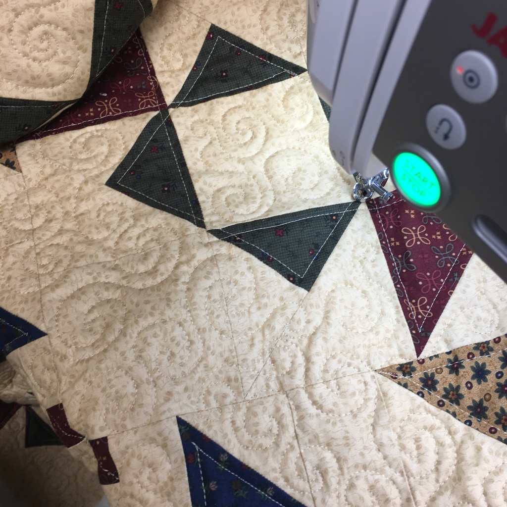 Quilting has started on the Moorewood Mystery. Swirls and straight lines … nice and simple!