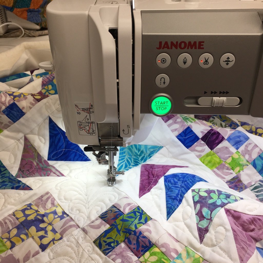 My April Island Batik challenge is being quilted. (Sorry – no pictures until April