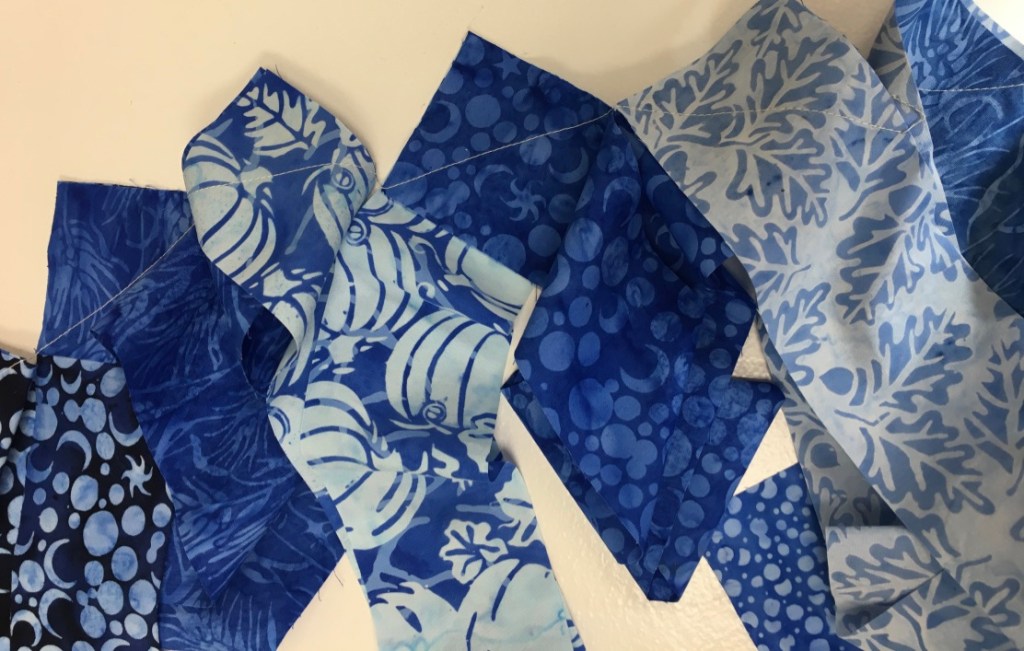 In my January Island Batik box, I received a strip set of the Harvest Blue collection. What a perfect collection to try out a bowl or 2 with.