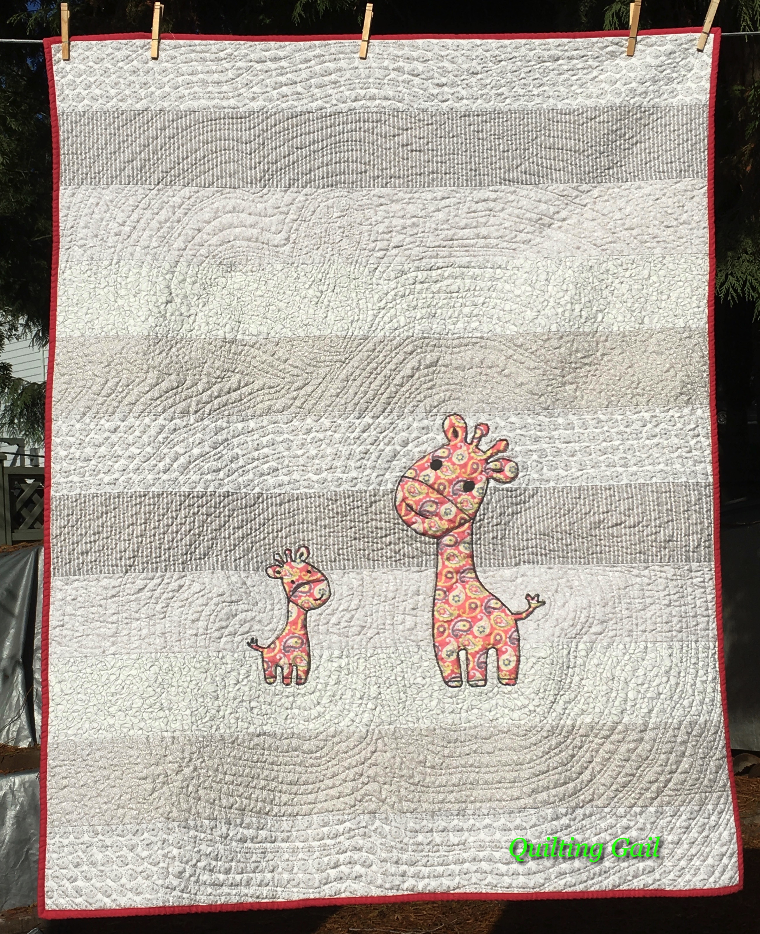 Hi Gail! OMG! Those Serengeti placemats are just GORGEOUS. And the four that you had issues with and just a fab as totes. As you said, it’s a great remembrance of your trip and both projects are very useful, too. Perfect for this blog hop. That young man looks quite happy with his elephant! I love seeing photos of quilts with their peeps. Happy Friday, my friend. ~smile~ Roseanne