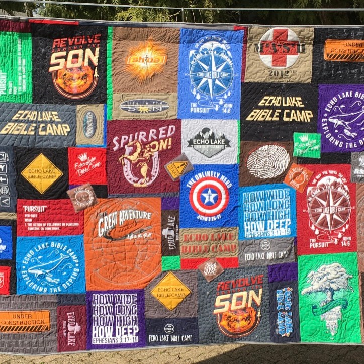 The backings from the 3 “favourite” quilts this month, plus the aqua table topper were all from my stash and totalled 11 yards.