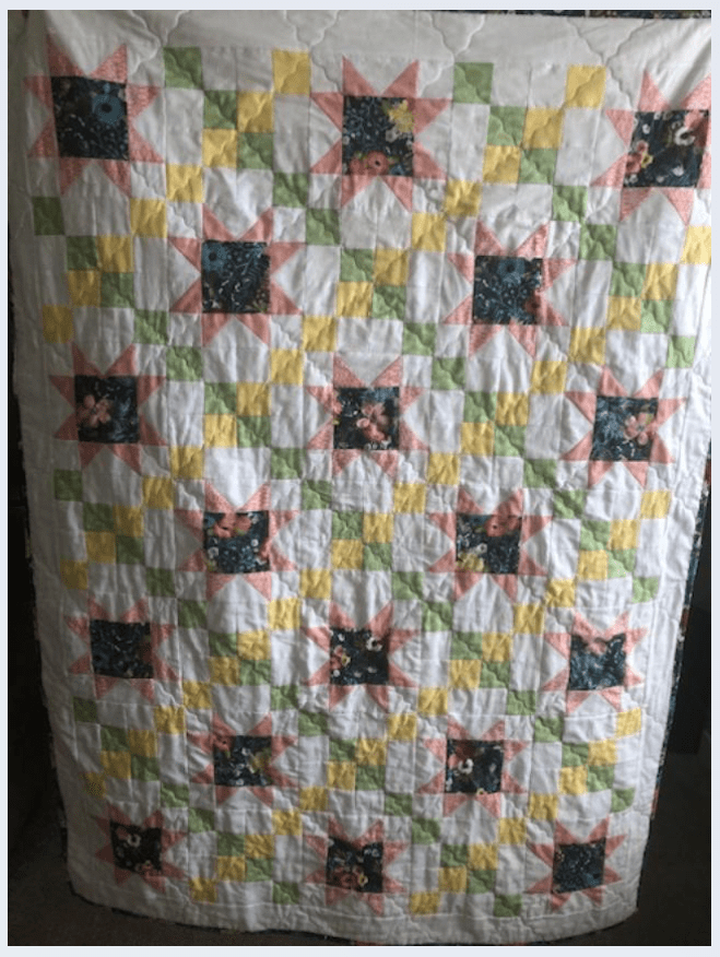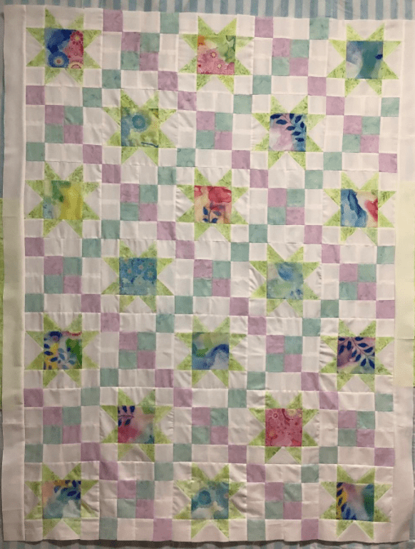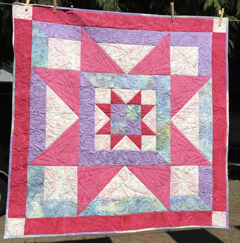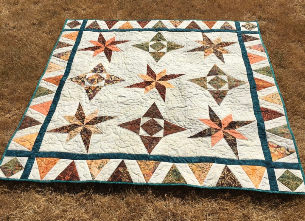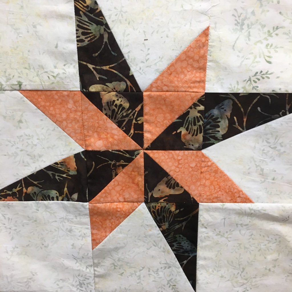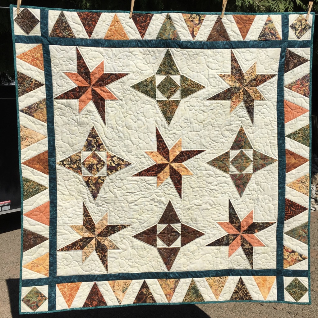 This month, I had a DrEAMi … (Drop Everything And Make it) This was a pattern from Sandra Walker (from Musings of a Menopausal Melon) and after seeing that several people made it … I just HAD to. The pattern is “Let Your Star Shine.” You can get the pattern from Sandra’s Etsy shop: HERE. It is a pretty quick quilt to make!