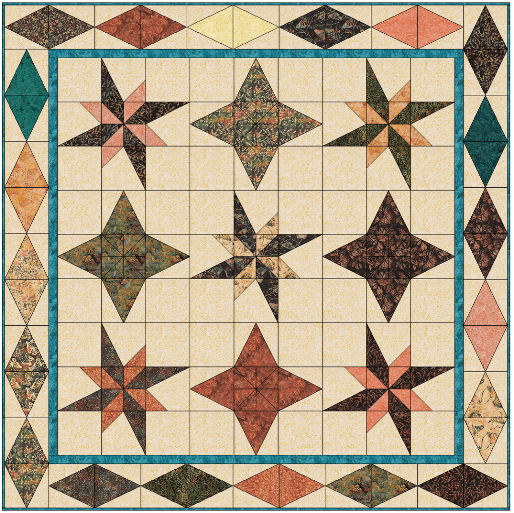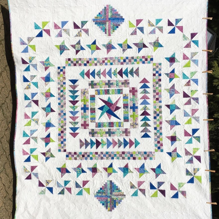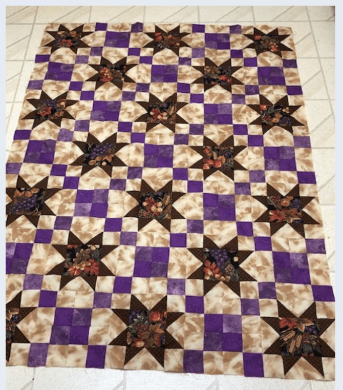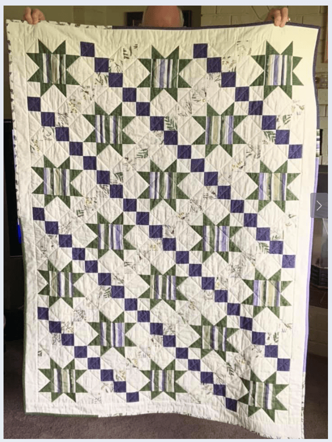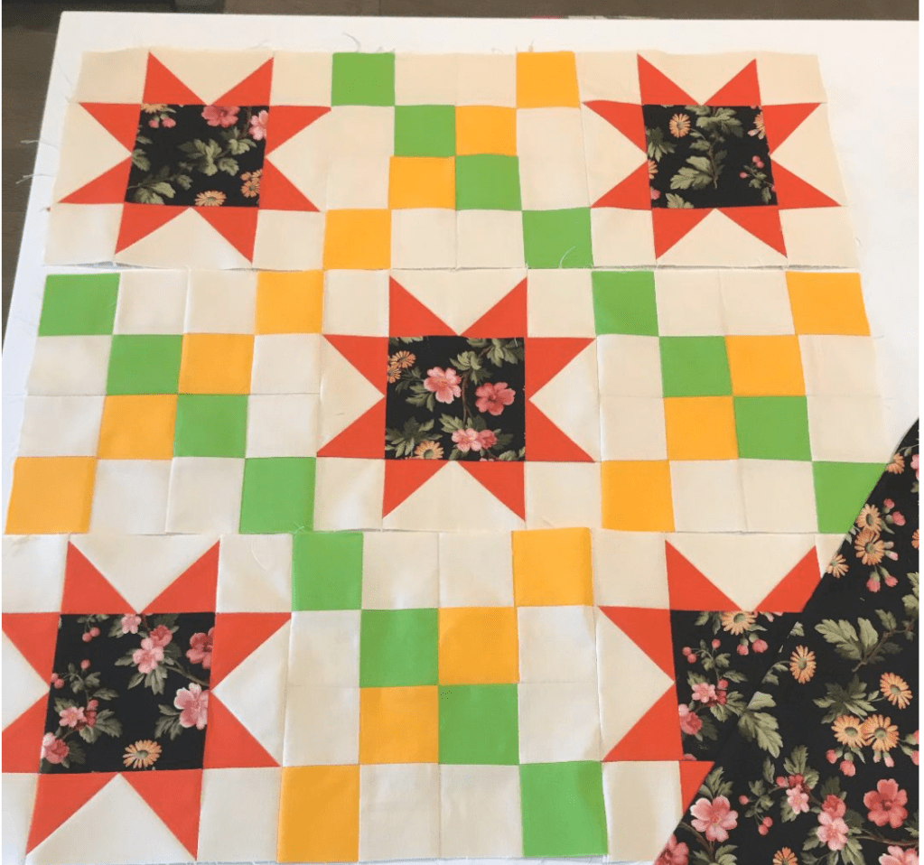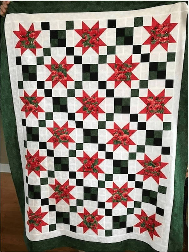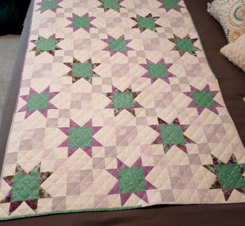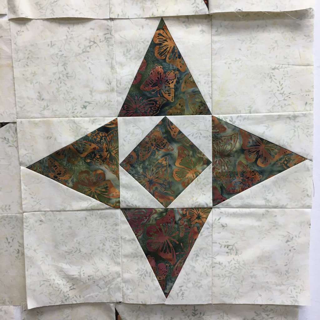 This month, I had a DrEAMi … (Drop Everything And Make it) This was a pattern from Sandra Walker (from Musings of a Menopausal Melon) and after seeing that several people made it … I just HAD to. The pattern is “Let Your Star Shine.” You can get the pattern from Sandra’s Etsy shop: HERE. It is a pretty quick quilt to make!