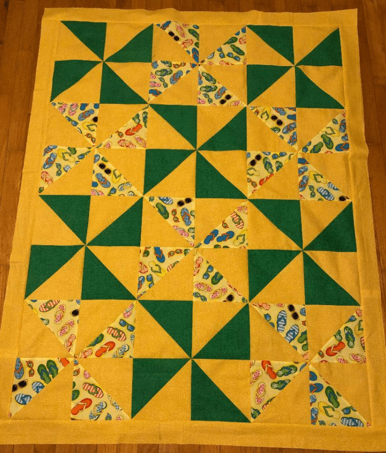 My pattern tester added an 6 extra HST in each colour so she could do pinwheels: Her quilt measures 40″ x 52.”