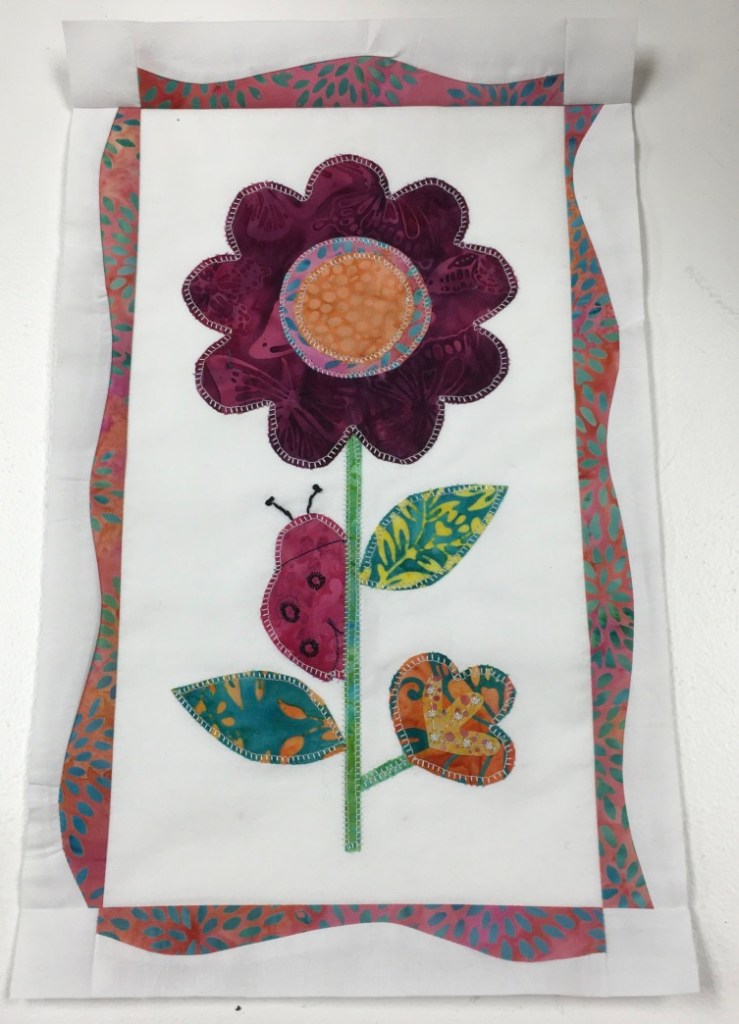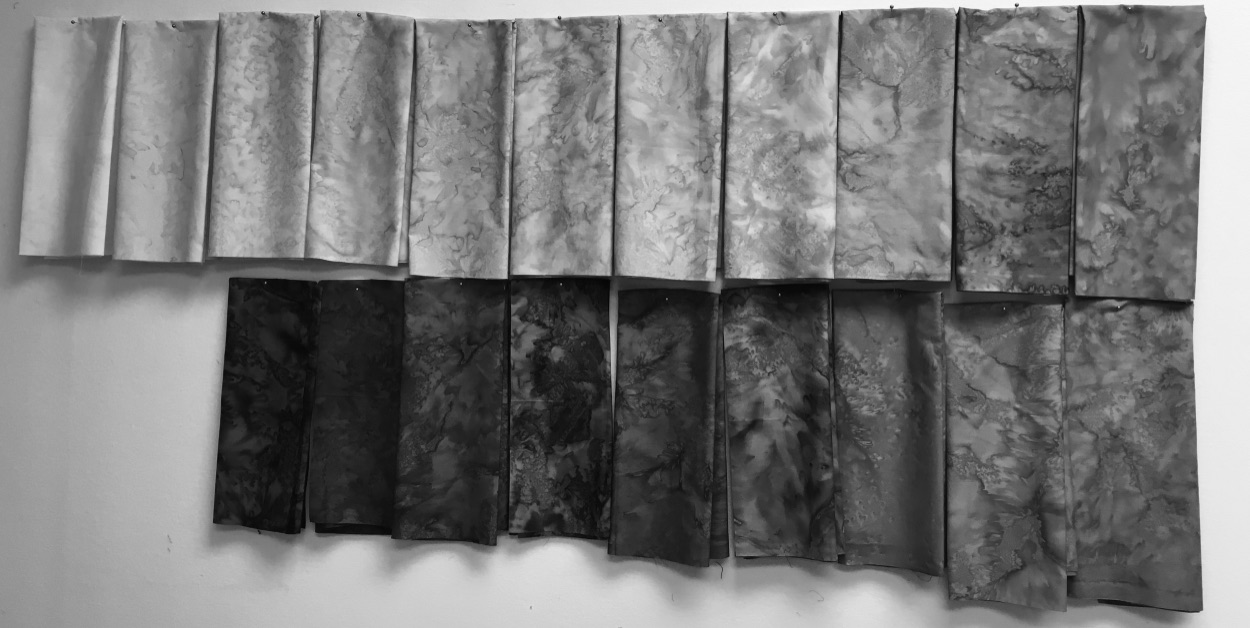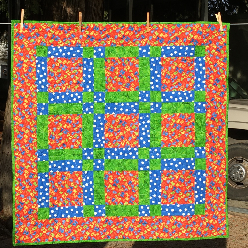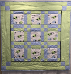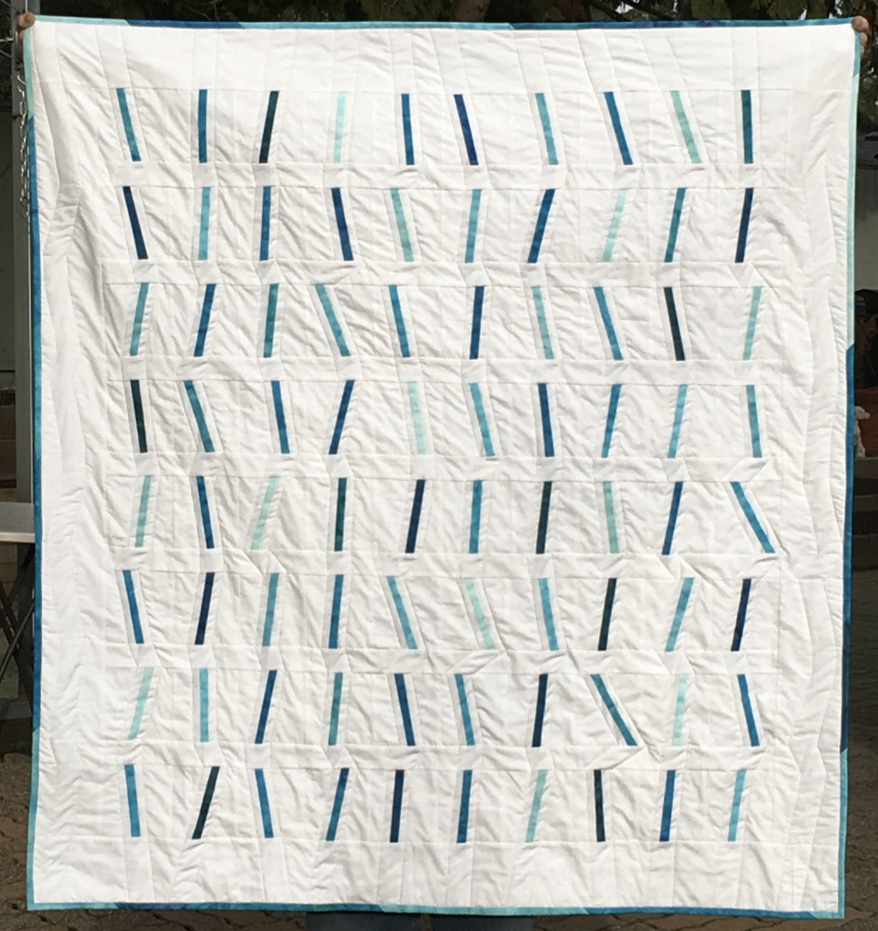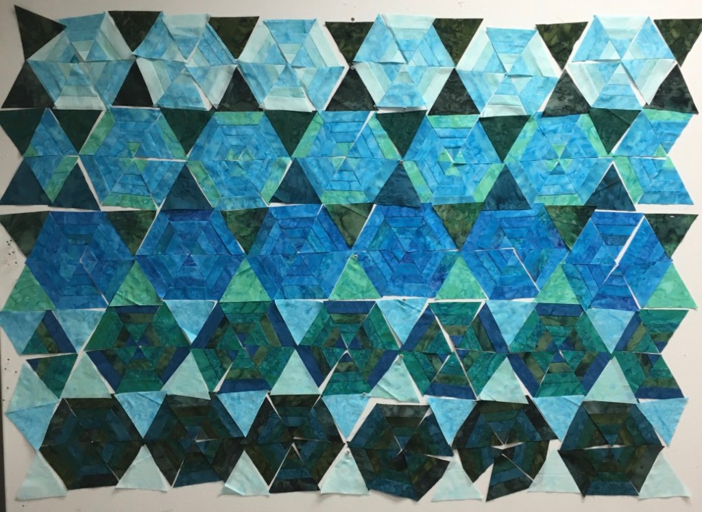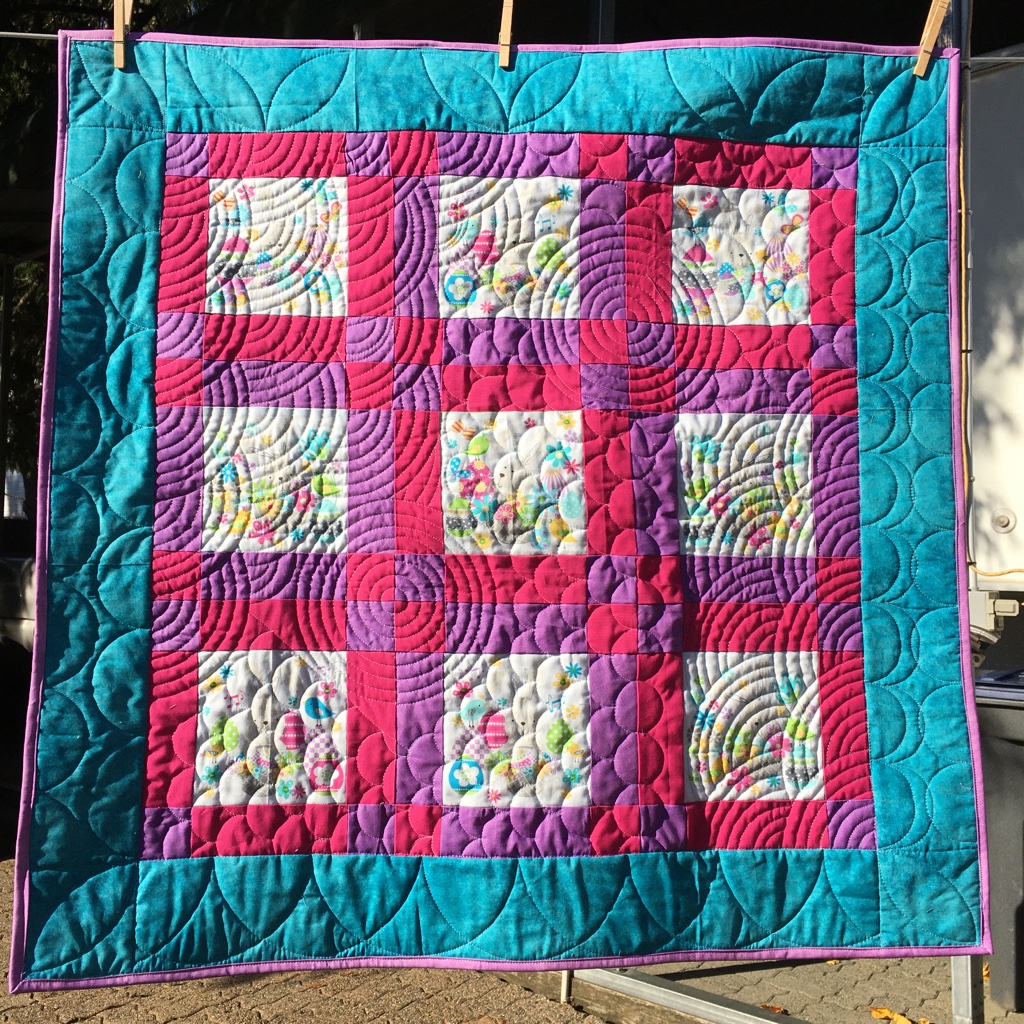 This is what Stella says, “While rummaging in the pile on my table I found a small diamond ruler( came free with a jelly roll!) so I thought it must be a hint to do my homework! I’m sure there must be an easier way to make diamonds but I just kept plugging along…..and this is what happened….” “I’m calling it “a modern amish”. Loving the black and brights.”