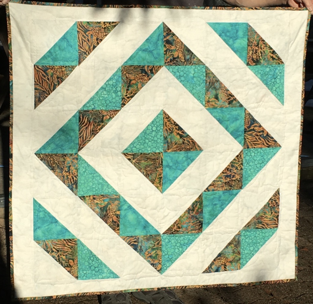 Carol says, “Well after much fiddling, watching you tube, and using jack, I finally got some semblance of diamonds in the corners. Here is the finished corners. Not perfect but good enough for me!” Way to go, Carol!! They look great!
