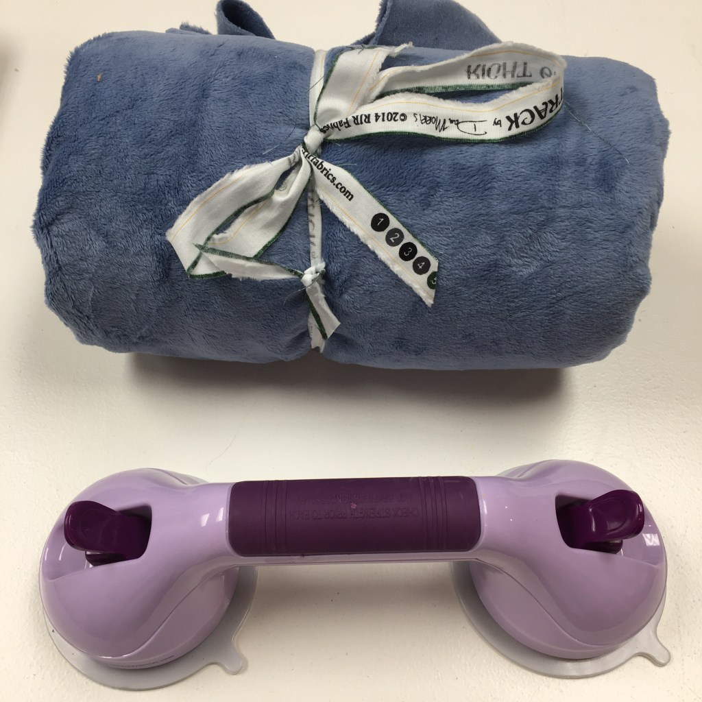 However, when things are staring you in the face, you HAVE to shop! The blue fleece was at the table next to me and after an hour, I broke down and bought it. It will back 2 baby donation quilts. And the ruler handle … oh yes, the ruler handle. Whenever I’m at a retreat with Patti, she always has a long ruler with a fantastic handle on it. I gravitate to that ruler and absolutely LOVE the extra stability the handle adds. So, of course, I HAD to have it!!!