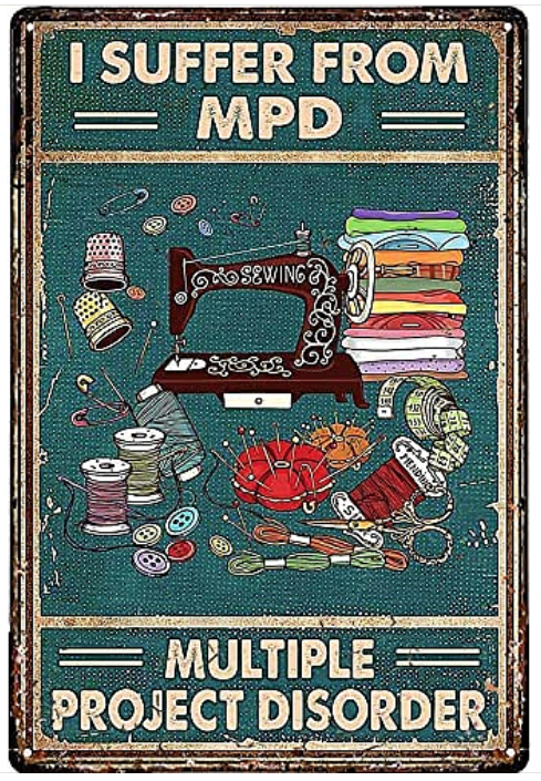 My sister sent this to me … sigh! It’s from Quilt Digest’s FB page and apparently you can buy it on Amazon HERE … but it’s currently unavailable. That’s OK … I know I have MPD and really don’t need a sign in my studio to tell me about it! I’m happiest when I’m working on 2 or 3 or 4 projects at once! I love the challenge of keeping them all straight!