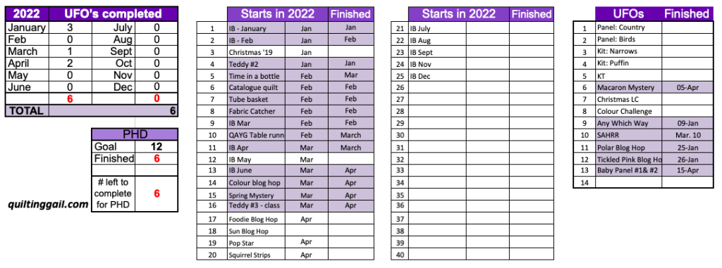 I’m counting the 2 baby quilt panels as 1 UFO that is finished. That means that I only have 6 more UFOs to finish this year! Sigh … I thought I had found ALL of the UFOs before, but alas … there are likely more hidden away! I was secretly hoping that this would be the last year for me to host PHD in 202? But, if I keep discovering more – I’ll be hosting PHD for many years to come!