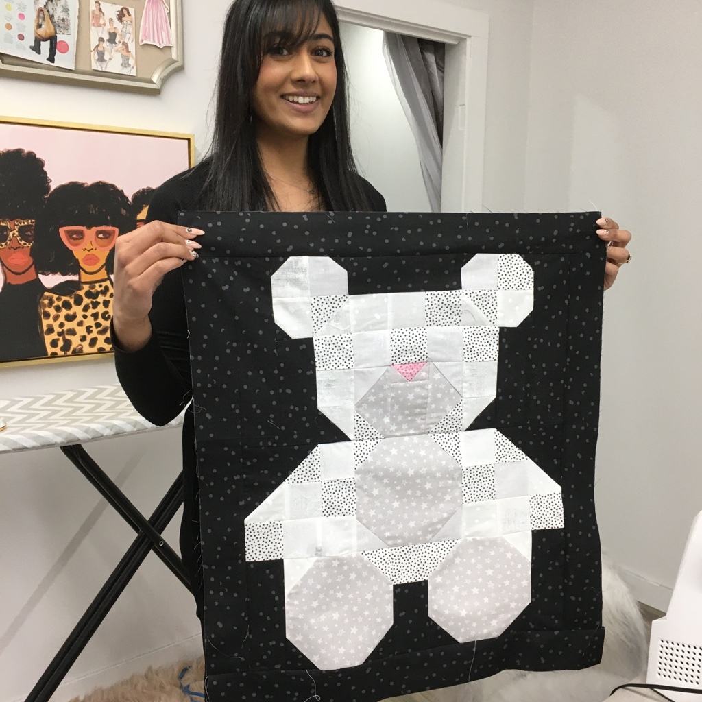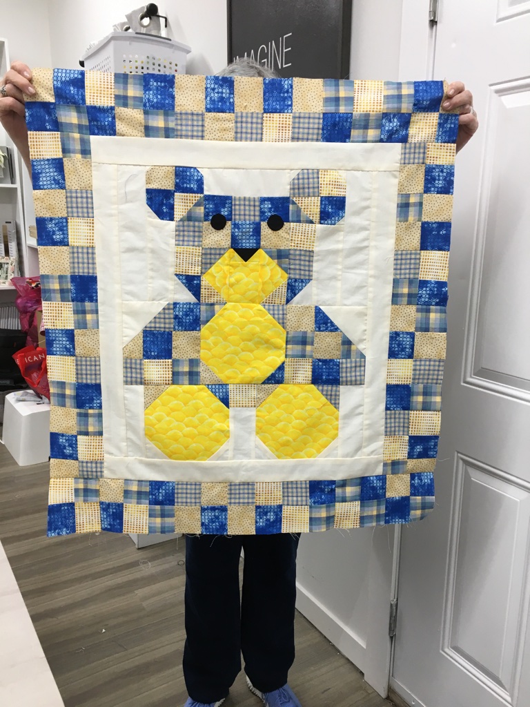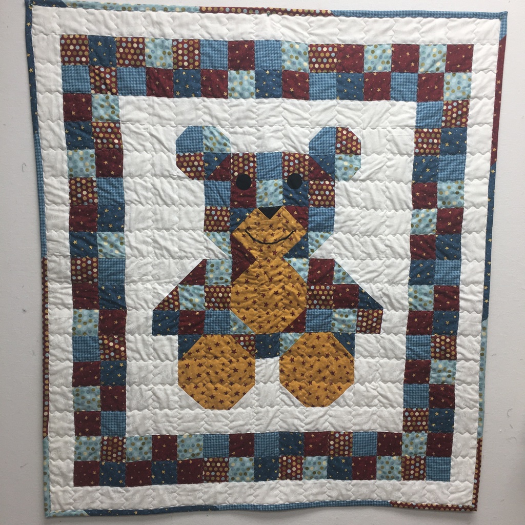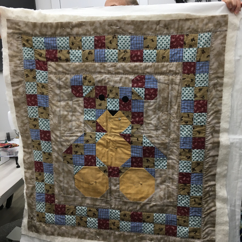Nancy claims she’s not a quilter! I beg to differ with her! She’s done an awesome job with this teddy bear.