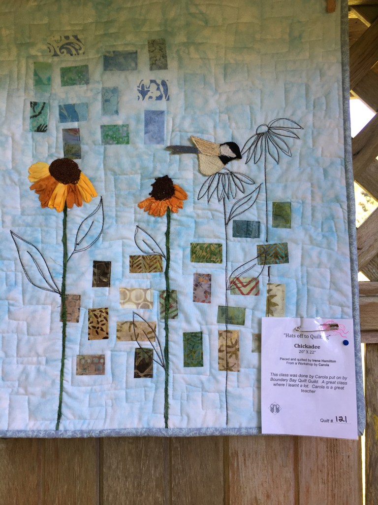 The theme was “Hats Off to Quilting” and they had hats scattered throughout the garden. I didn’t take a picture of every quilt. but here are a few that caught my fancy! And, I realize that there are a few quilts that I loved, but didn’t take a picture of! {groan}