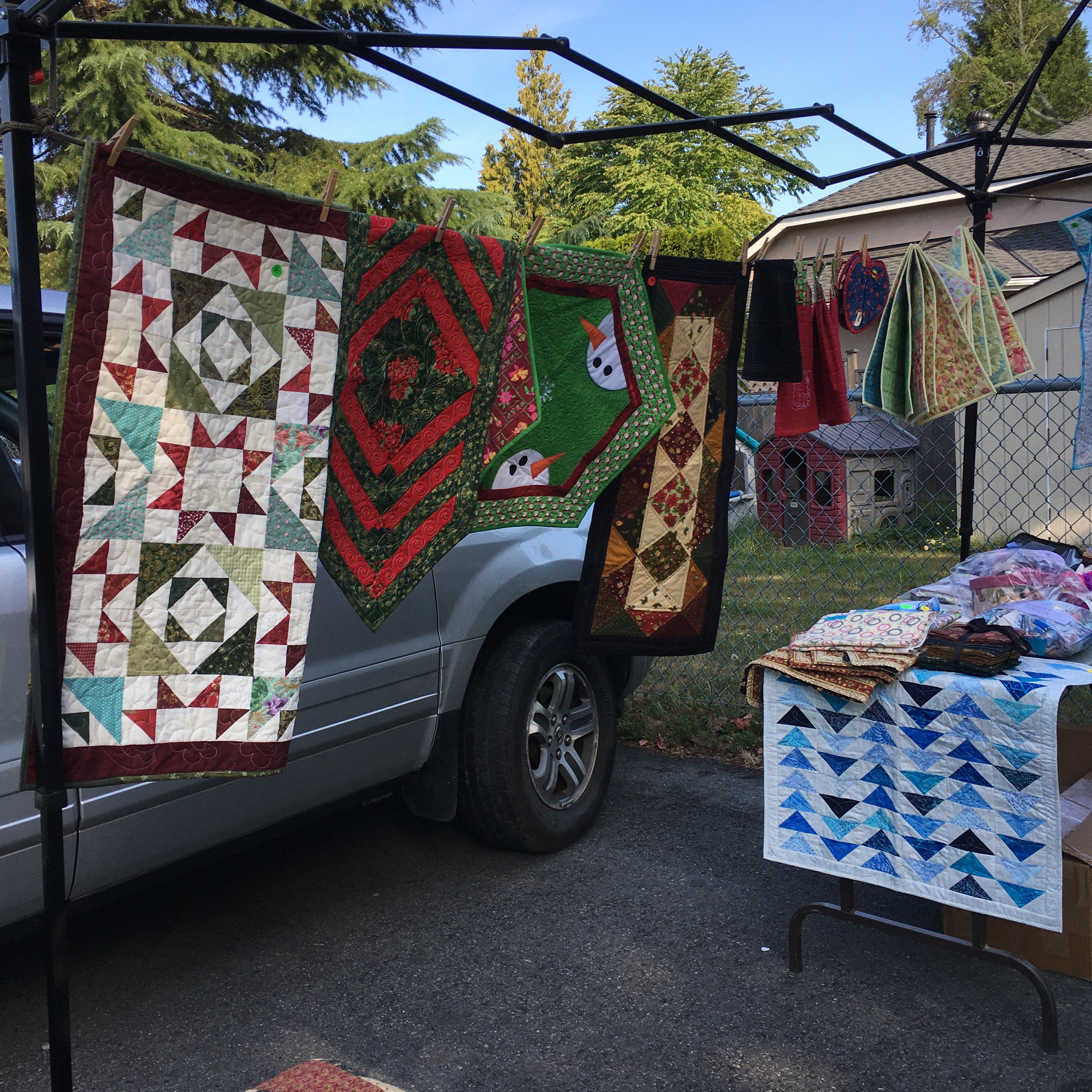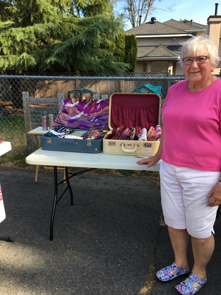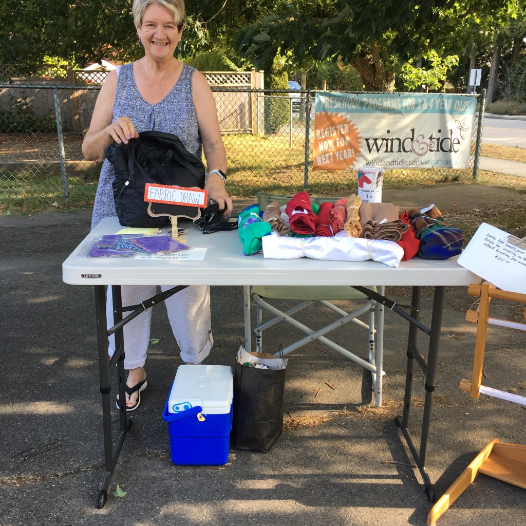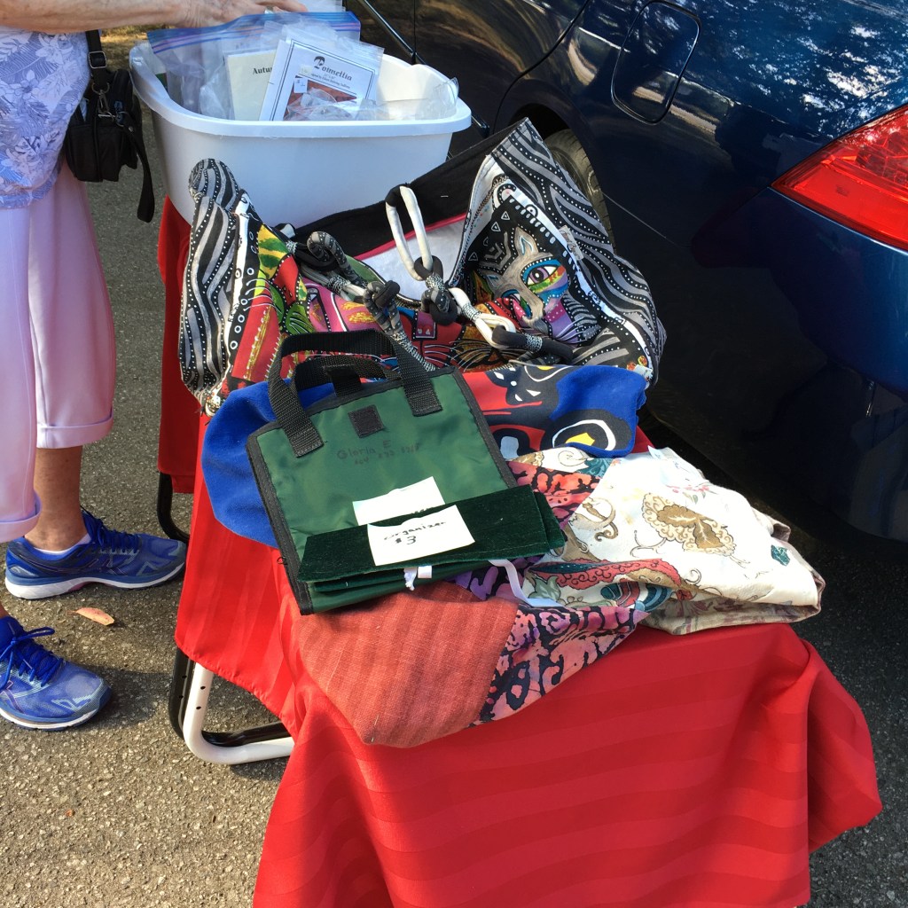 Last Saturday, our guild had a “Boot Sale” … or a garage sale. We met in the parking lot of a local church and spread out our items.