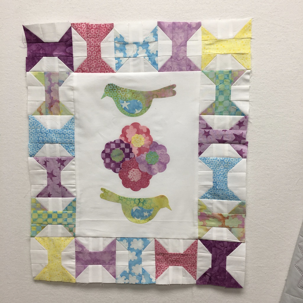 I could have easily finished the Quilt More, Worry Less wall hanging, but I didn’t have binding fabric with me and I did not want to buy any more fabric … but it may be finished soon!