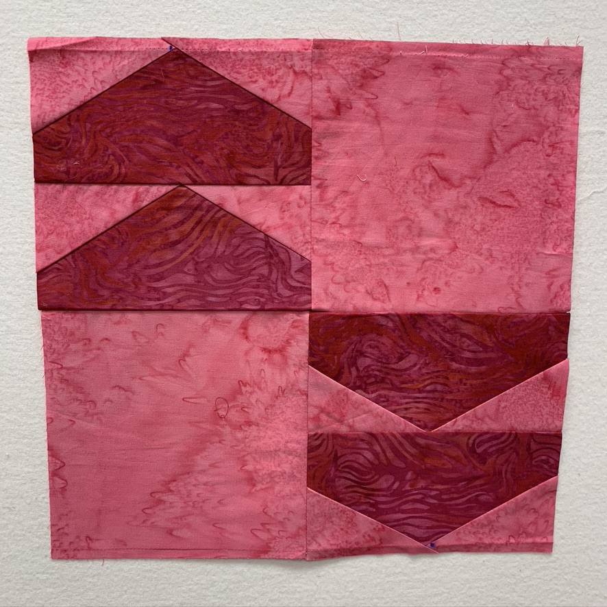The colour for January is pink. I used scraps of Island Batik to make this beautiful block. Visit Patterns by Jen to download the pattern this month. It’s free until the end of the month. She also has a video to help you make the funky flying geese!