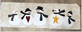 Here’s Charlene’s. She says, “Spools are done, think I’m doing row by row, still deciding on end blocks for my snowman row.” It’ll be fun to see what she decides to do!