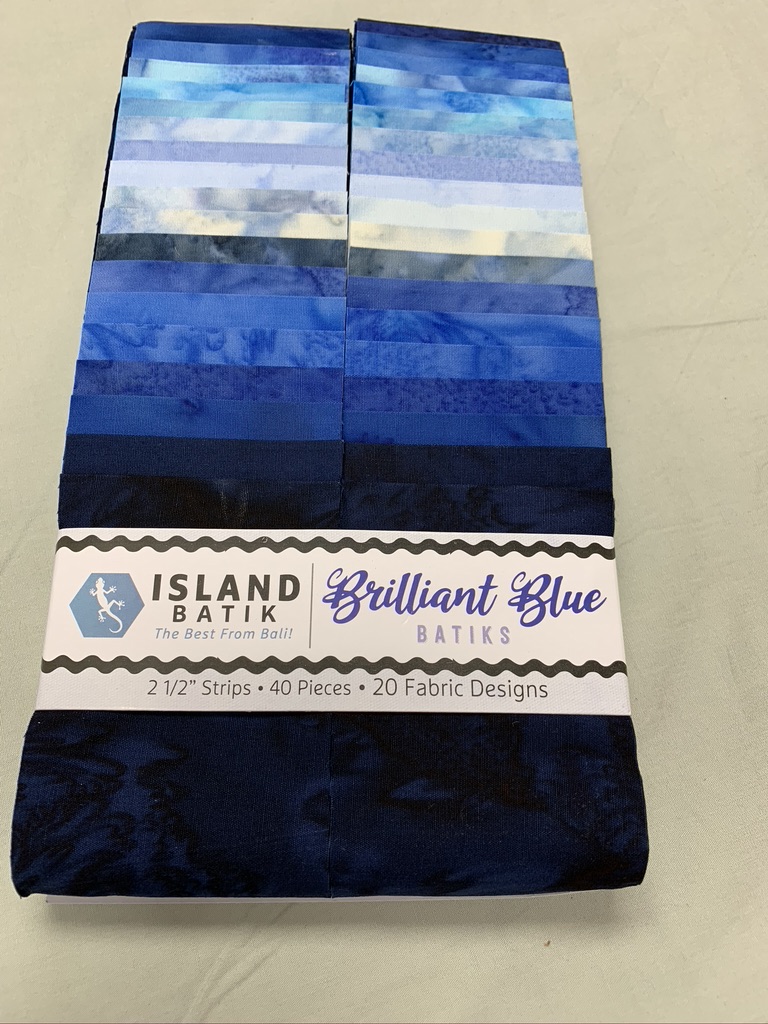 Brilliant Blues!!! a 2 1/2” strip set. 20 different blues, 2 of each colour!!! How fun!!!