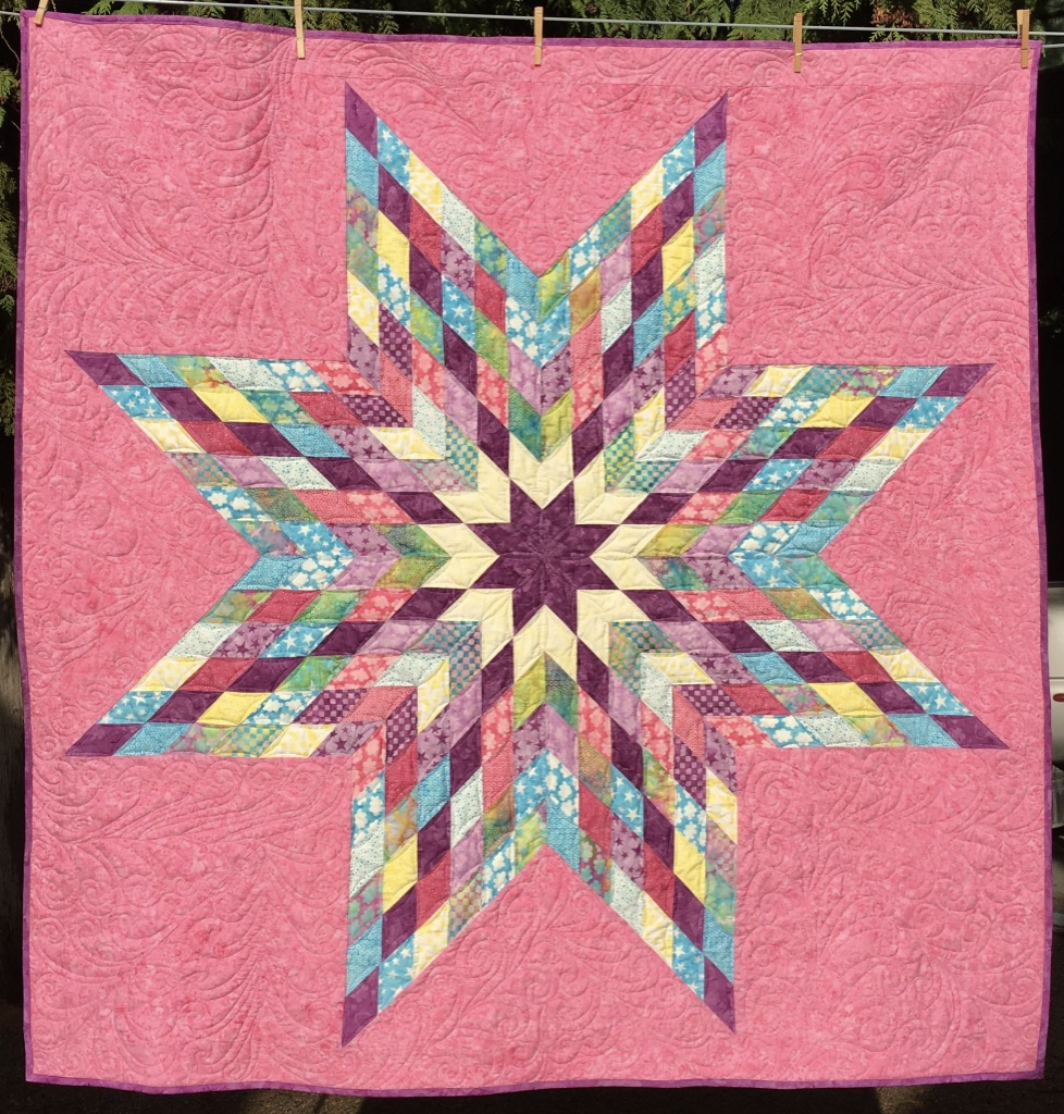 In December, I needed to make a Lone Star Quilt for my Island Batik challenge. I made this pink Lone Star using Baby Bloomers (a signature collection by Kathy Engle for Karen Overton). You can read more about it HERE.