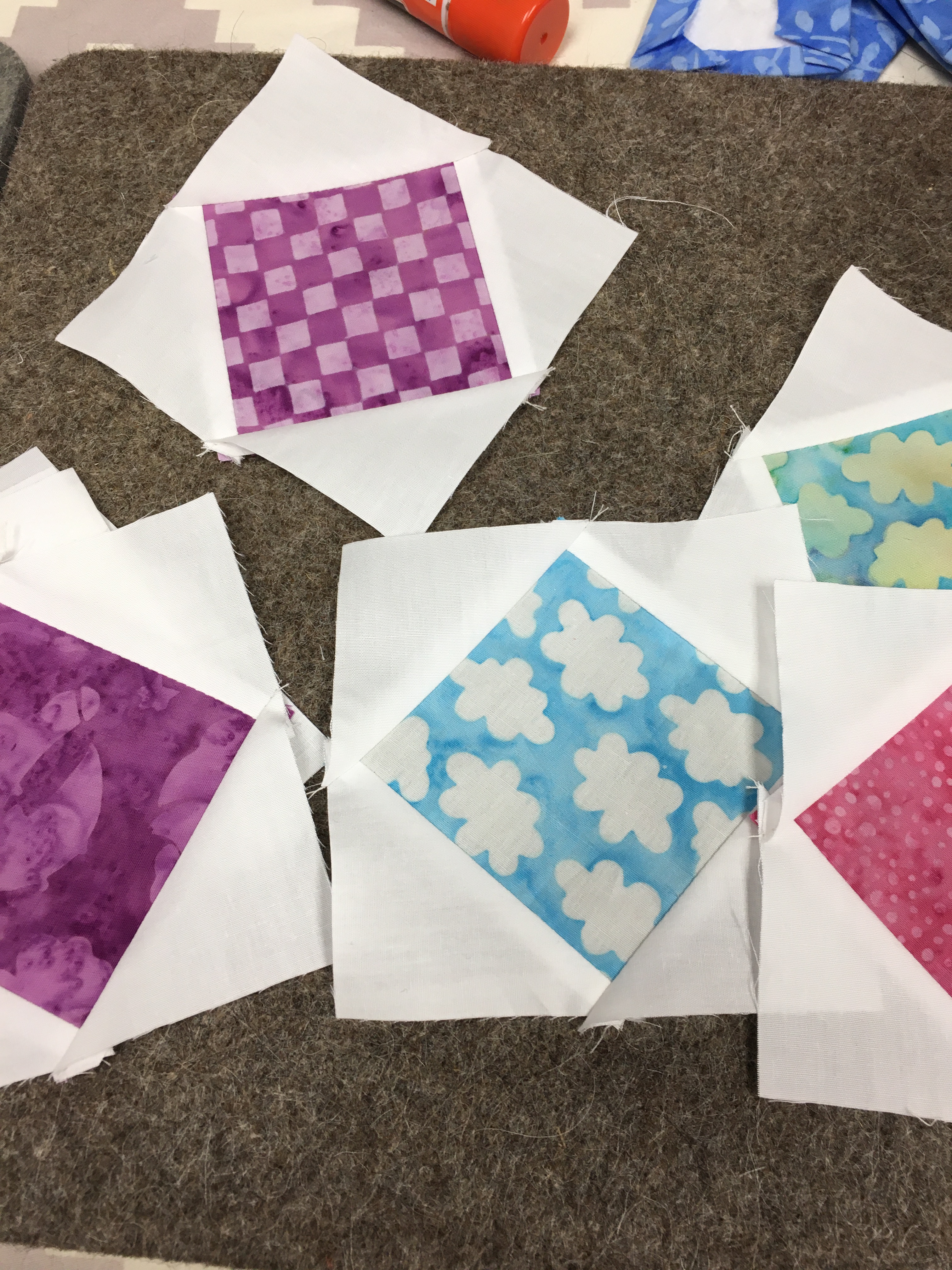 This is Chere’s. Here’s what she says, “These are my flying geese and my square in a square. It’s been fun trying to figure this out. Looking forward to the next round.”