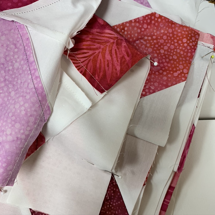 Fabrics: Island Batik scraps paired with Island Batik’s solid white.