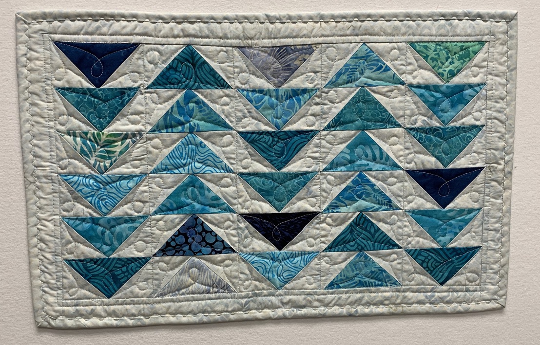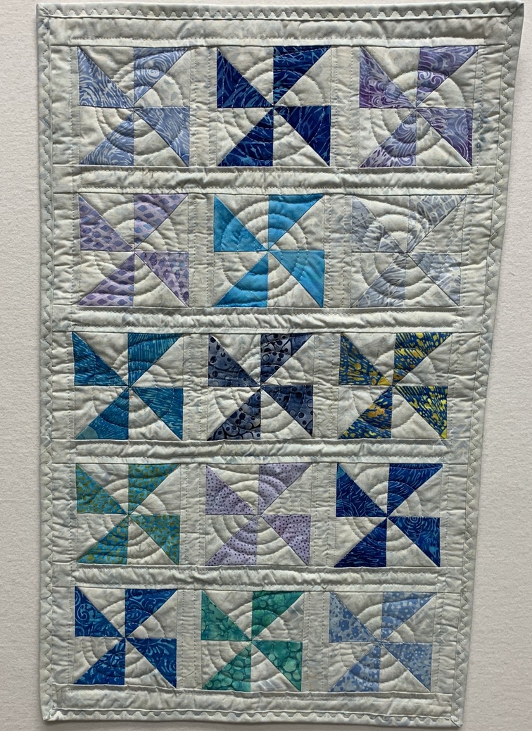 I finished one UFO this month, my Shades of Blue project. You can read more about it HERE. (These used Island Batik fabrics, Aurifil thread and Hobbs batting).