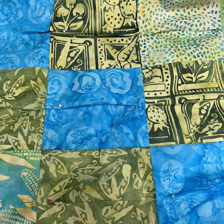 All of the fabrics were from my Island Batik scraps and I only cut into pieces that were smaller than a fat quarter. Many were from various collections. And for something scrappy like this – they all work well together.