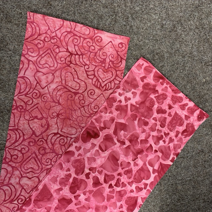 Since, it calls for 5″ squares, I went to my Island Batik stash and found some beautiful heart prints from a stash builder roll! Perfect! Hearts for a Heart Shaped pouch! Aren’t these pretty fabrics?