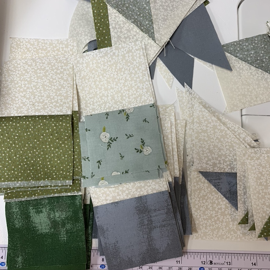 Have you been following the Stay At Home Round Robin? Last week was Round #4: Flying Geese! I’m using fabric collection “Baby Bloomers” (by Kathy Engle for Karen Overton). I absolutely LOVE the fabrics in this collection! As you can see from the picture below, there’s a range of colours! Each one is SEW pretty!