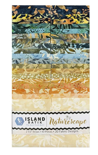 Fabric: Island Batik Naturescape strip pack, solid grey and Large Netting – Pineneedle