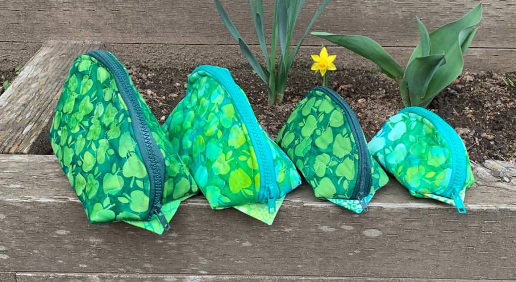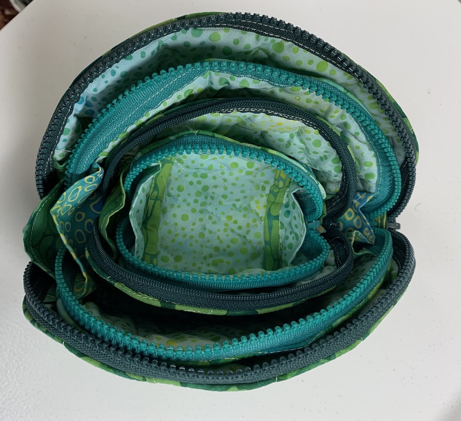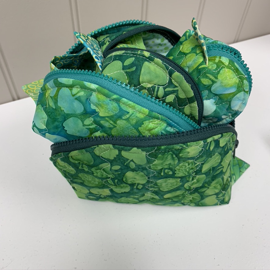 4 NEW starts were finished this month. The Little Green Apple Clam-Up bags, the bags for the guild, the Ruler Quilting Quilt and the Bargello Quilt. All used Island Batik fabrics, except for the bags for the guild.