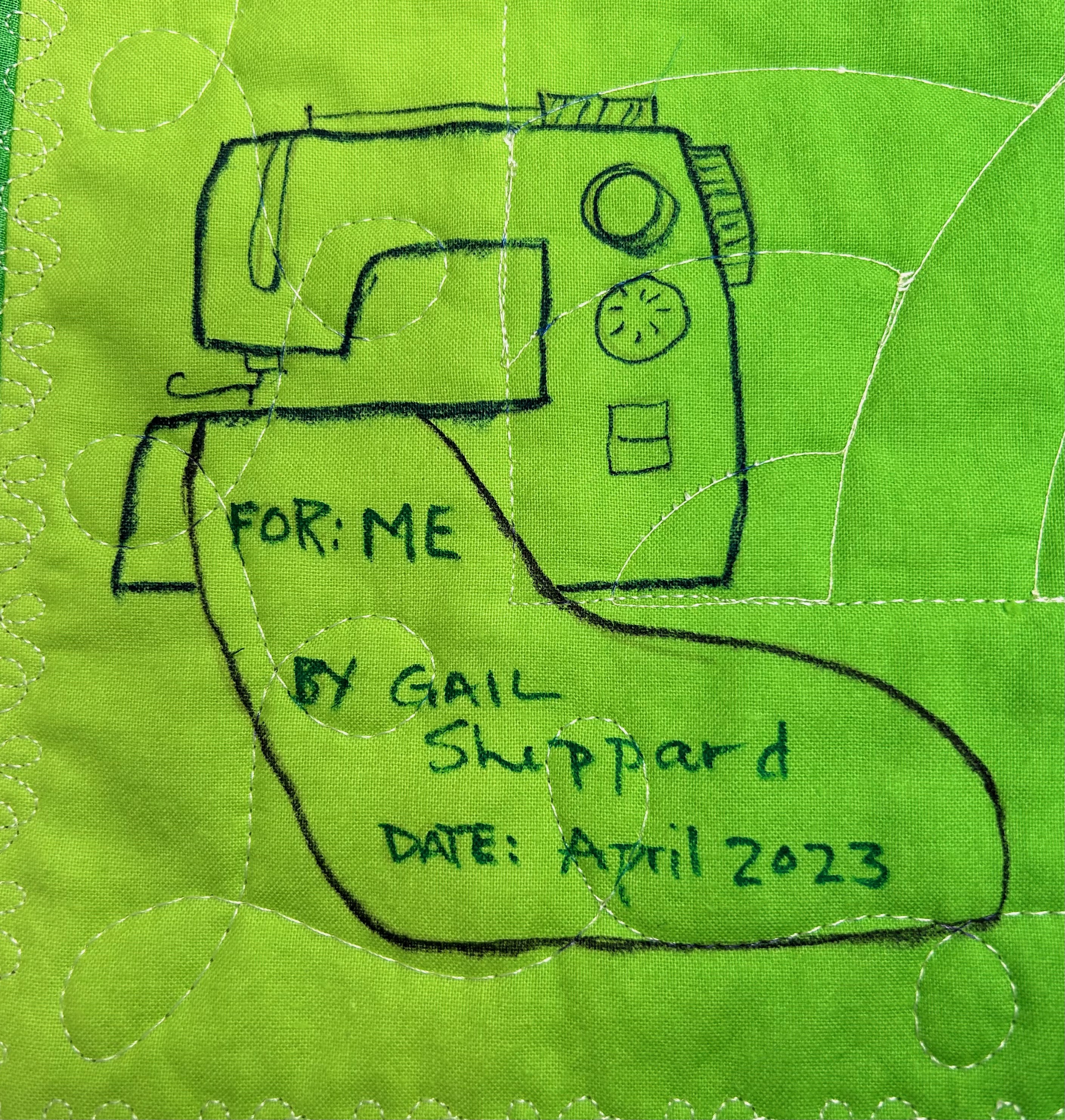 This is an awesome panel! I love how you quilted it, too. You’ll have the best dressed sewing machine at your next retreat, Gail!