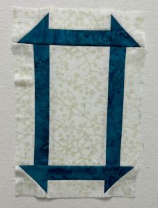 My centre block shows the Teal and Egg Shell. It’s an elongated Churn Dash.