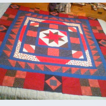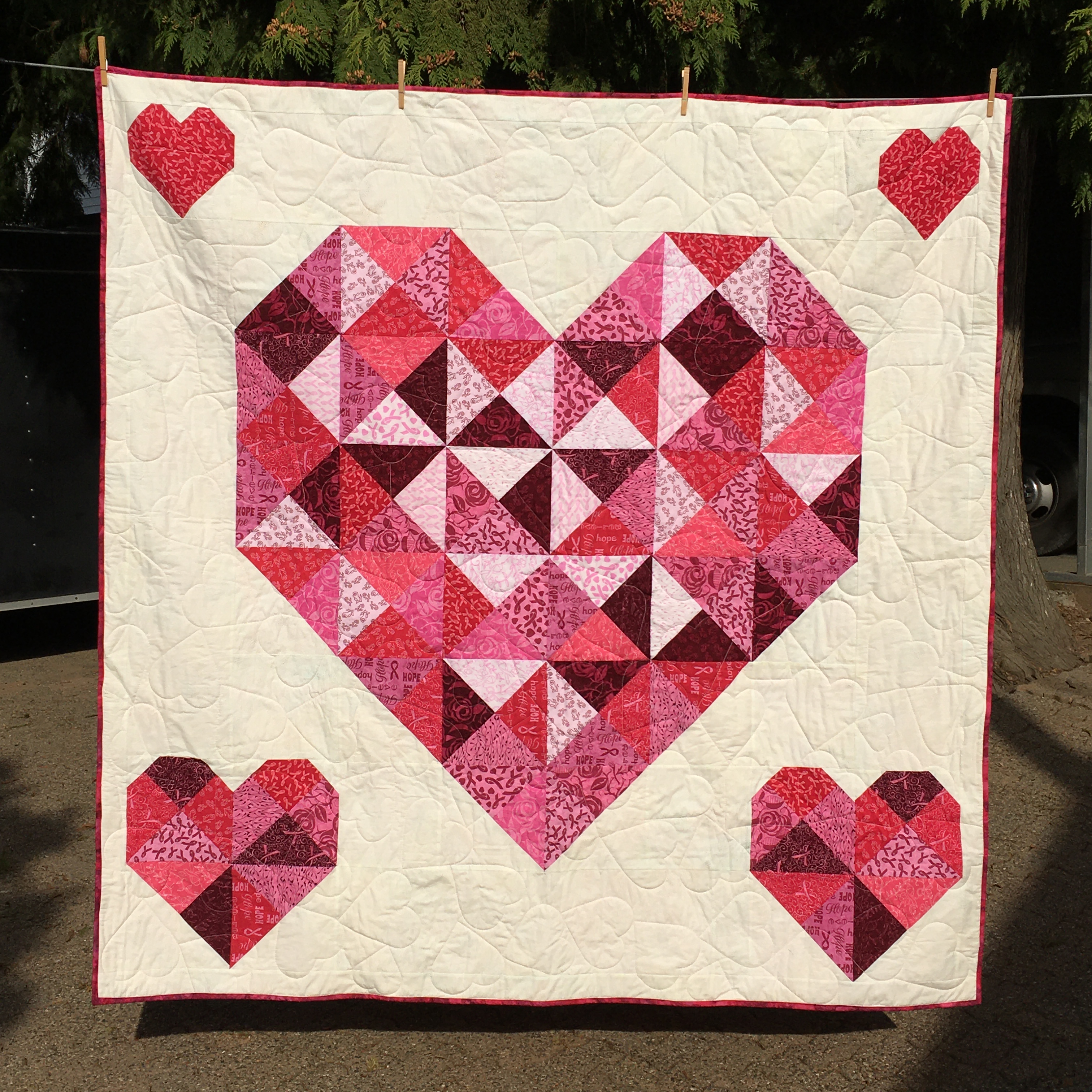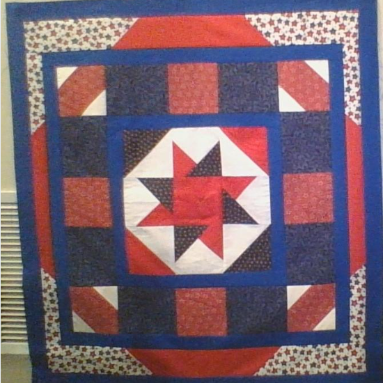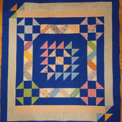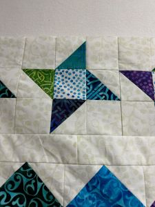 Well, no! It was too busy … and I hated it. And I didn’t take any pictures of the not-so-nice blocks. So I cut more triangle blocks out of white fabric and came up with this quilt: