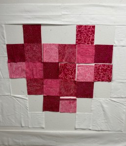I was gifted a fat quarter bundle … and then it was time to play. EQ 8 to the rescue!! But nothing said, “make me!” … So, I went to my Accuquilt dies and saw the Kite die in the 8″ Qube Angles box and paired it with the Triangles in a Square die. And I started cutting.