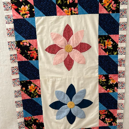 I add all of the side triangles I had cut with Pin Dot Floral and this quilt was born:
