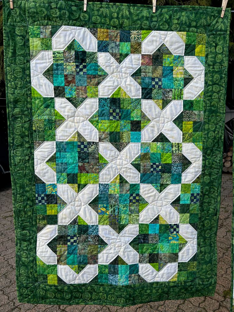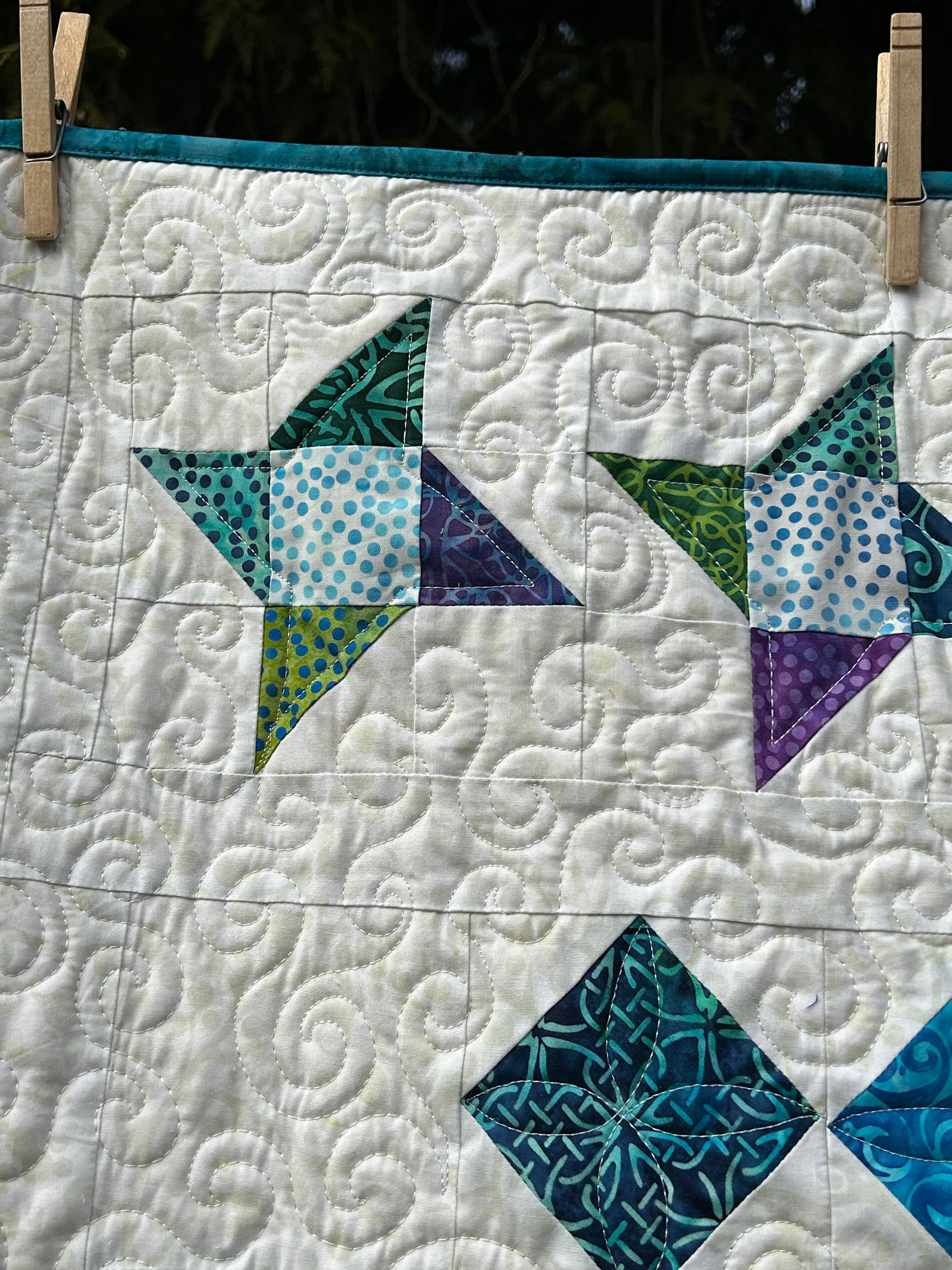 - Finish piecing Lone Star Left-overs from Pin Dot Floral lone star