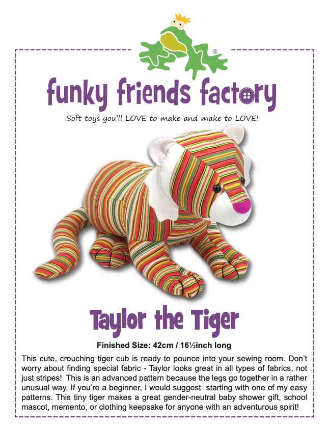 The first is Taylor the Tiger, a Funky Friend pattern. It was challenging, but fun to make! You can read all about him/her HERE.