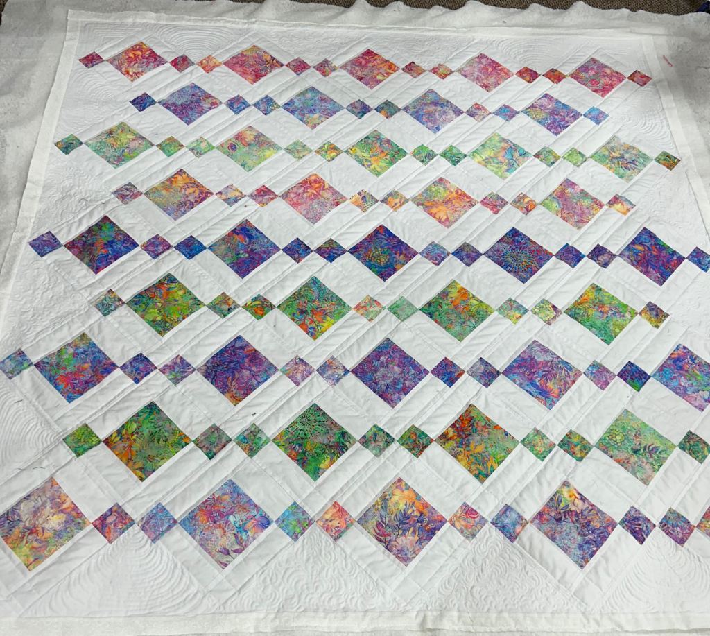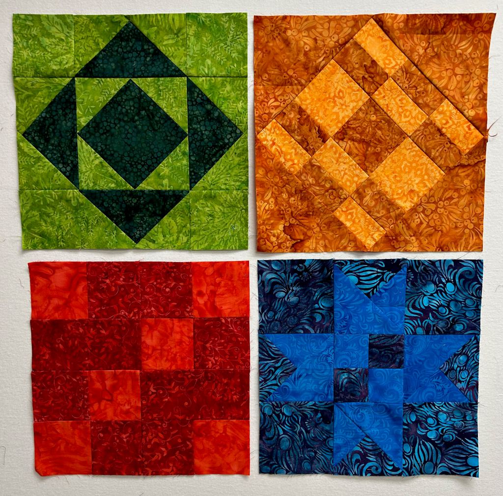 All but one of the quilts was made with Island Batik fabrics. They all have Hobbs batting and use Aurifil thread for piecing and most of the quilting.