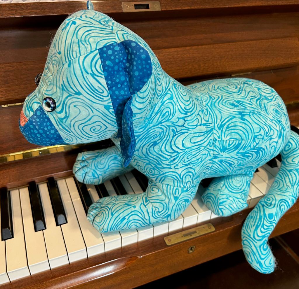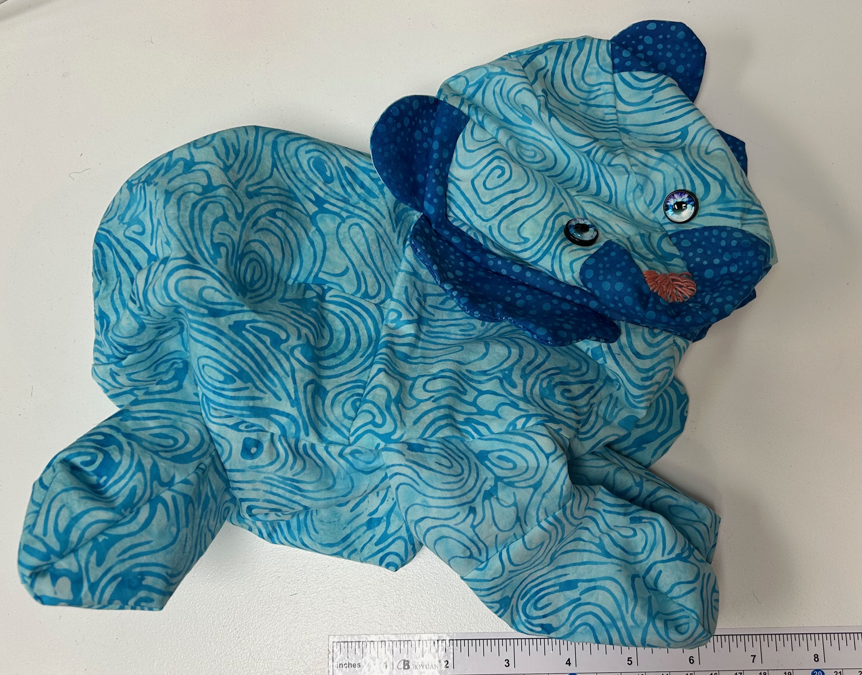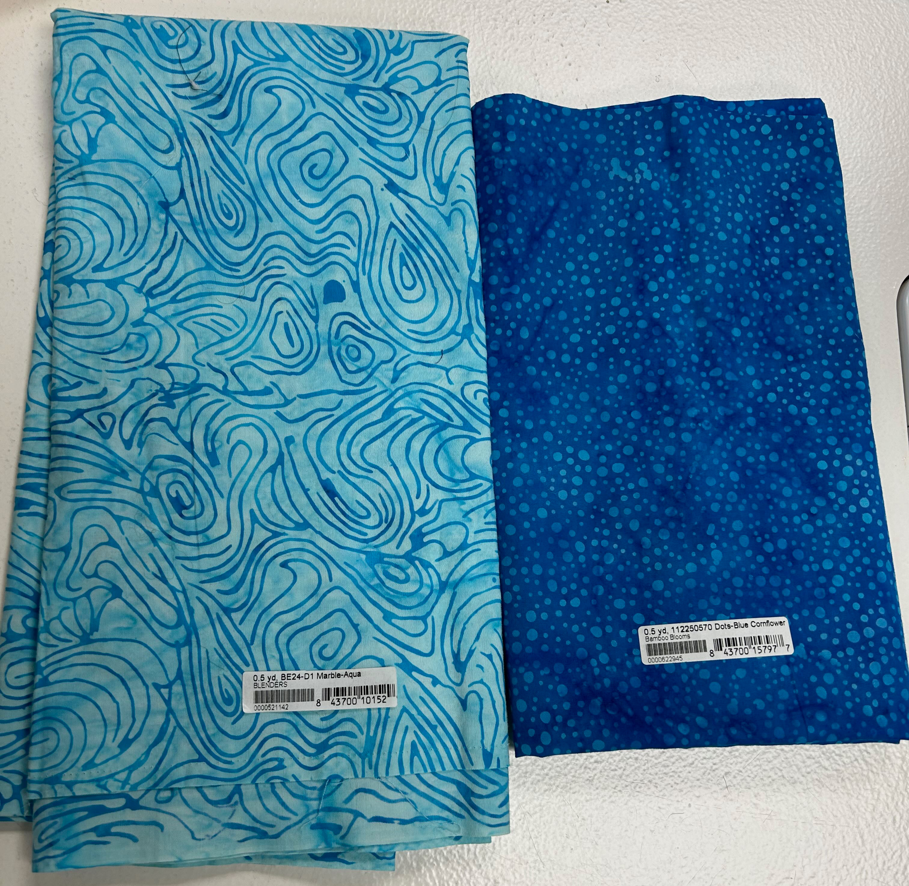 I don’t have any striped Island Batik fabric, but as soon as I saw the Marble Aqua blender, I knew it would be perfect for Taylor the Tiger. I paired it with Dots-Blue Cornflower.