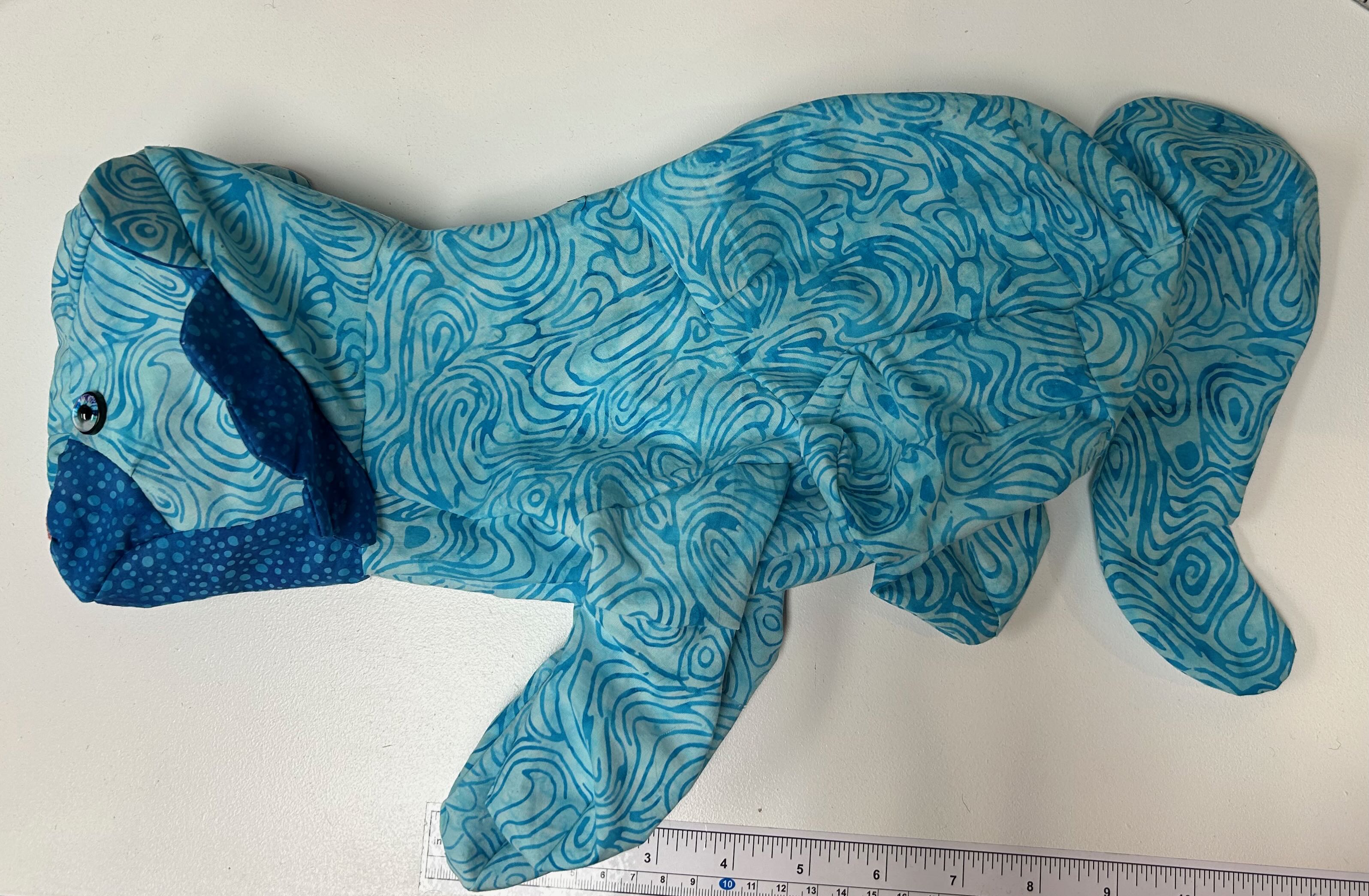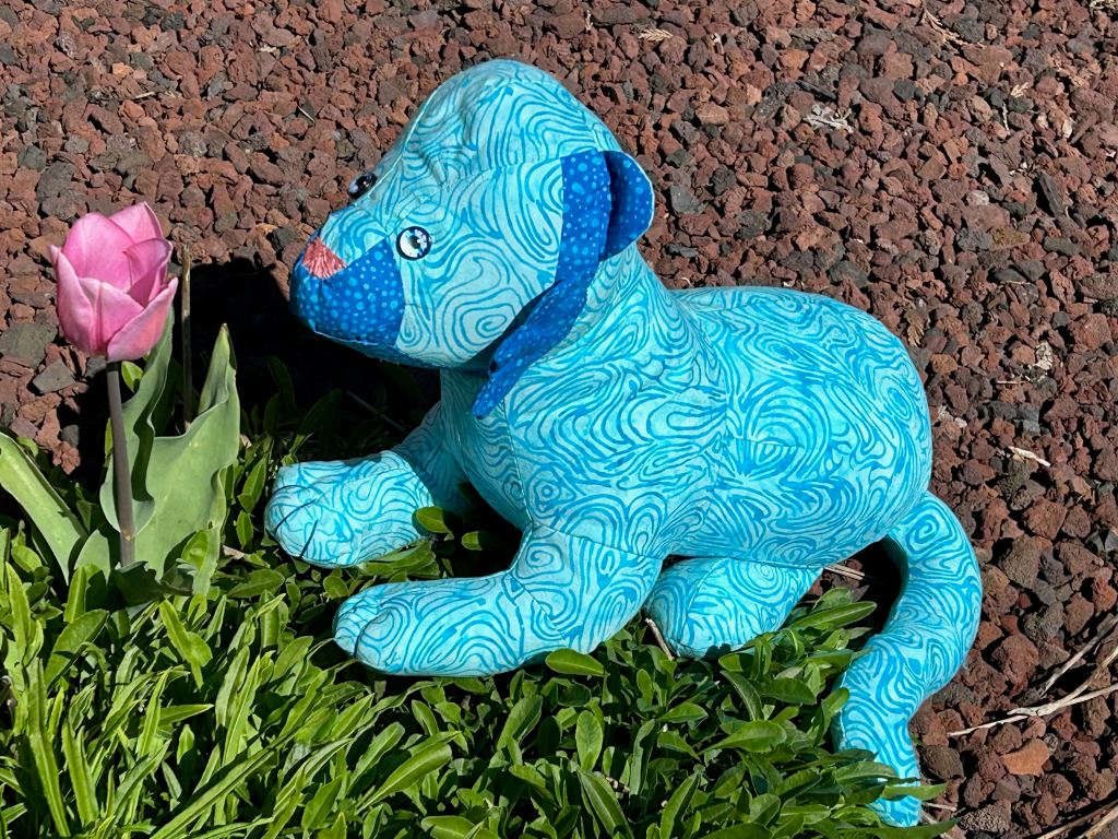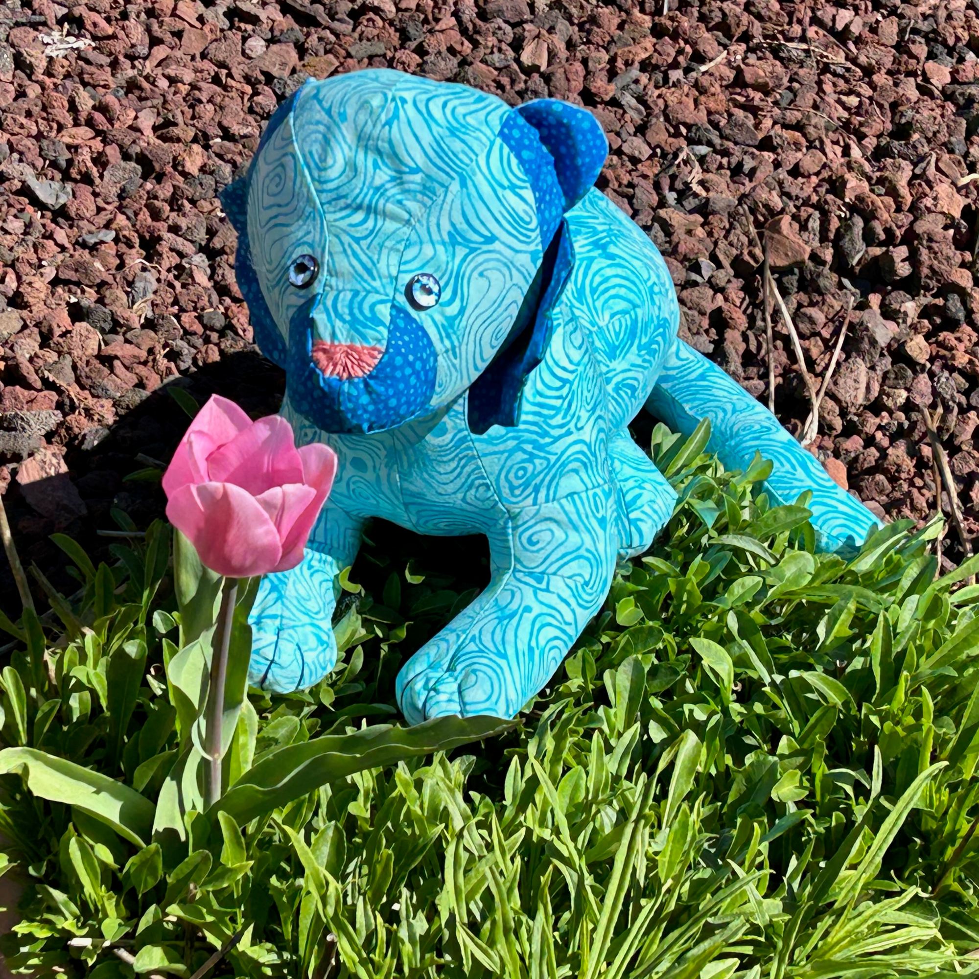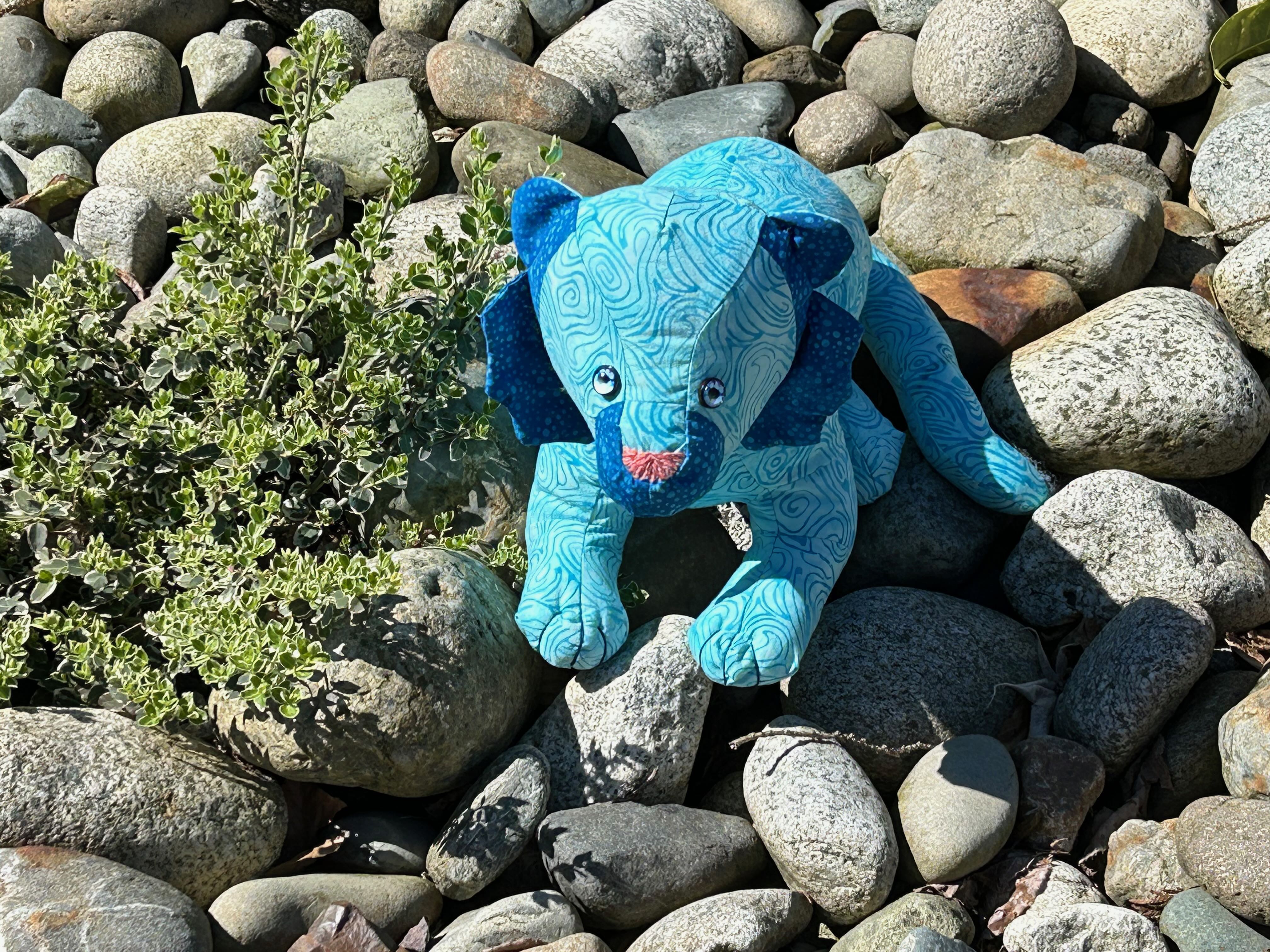 I don’t have any striped Island Batik fabric, but as soon as I saw the Marble Aqua blender, I knew it would be perfect for Taylor the Tiger. I paired it with Dots-Blue Cornflower.